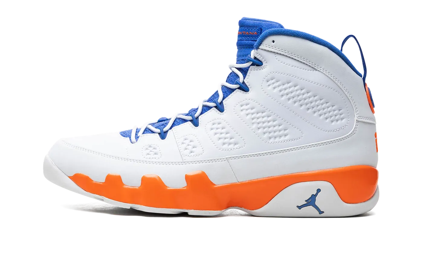 Nike had some fun with Jordan's retirement in 1994, creating the "Johnny Kilroy" ad campaign that suggested he hadn't retired from the game after all. In 2012 Jordan Brand created a retro Air Jordan 9 pack referencing each of the suspicious characters from the commercial series, including this Fontay Montana colorway in white, royal blue, and orange. These also double nicely as a "Knicks" colorway.