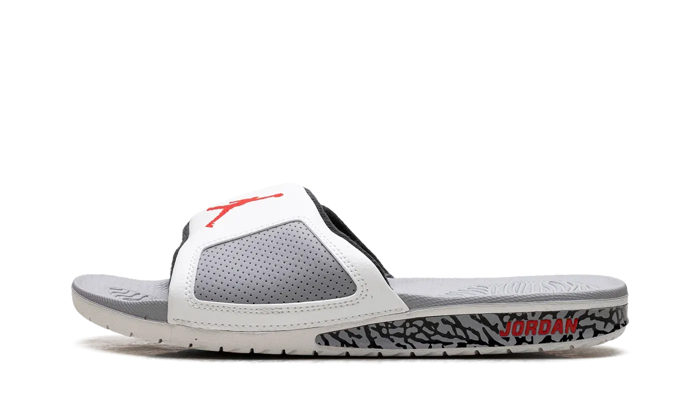 Kick back in style with the Air Jordan Hydro 3 Retro Slide "White Cement." These slides pay homage to one of the most iconic colorways in sneaker history, featuring the unmistakable "Cement" print on the adjustable upper strap. Designed for ultimate off-court comfort, they include a lightweight foam footbed and a hydro massage detail that offers soothing relief for your feet. It's the perfect way to bring legendary Jordan style to your post-game cool-down or casual weekend look.
