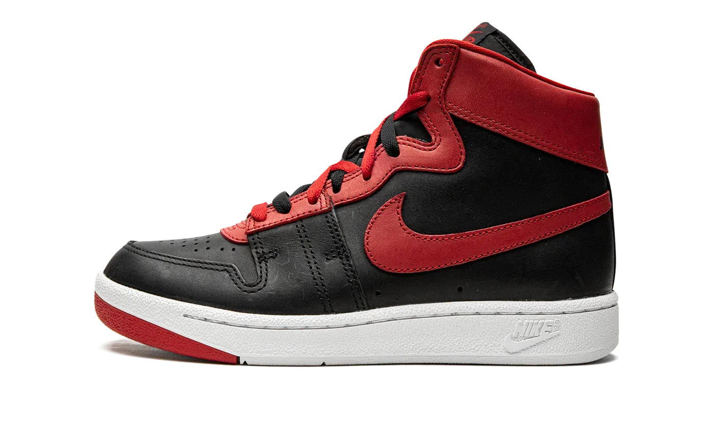 The Nike Air Ship Pro "Banned" is a limited edition colorway of the first shoe Michael Jordan wore in the NBA that was released exclusively at an Italian sneaker boutique in August 2020. Limited to 960 pairs, the modern Air Ship Pro "Banned" was raffled off and part of a scavenger hunt organized by Back-Door Bottega in Italy. The release was never publicly acknowledged by Nike or Jordan Brand, which only adds to the allure of the shoe that was previously barred from the NBA. True to the original design, the upper features a black leather base, including on the perforated toe, mid-panel, and heel. A red leather Swoosh appears on either side. Additional red leather detailing covers the collar and eyelets. Classic "Air Ship" branding can be found on the back of the collar. The look is finished off with a set of red and black laces on the black nylon tongue. Release date: August 7, 2020.