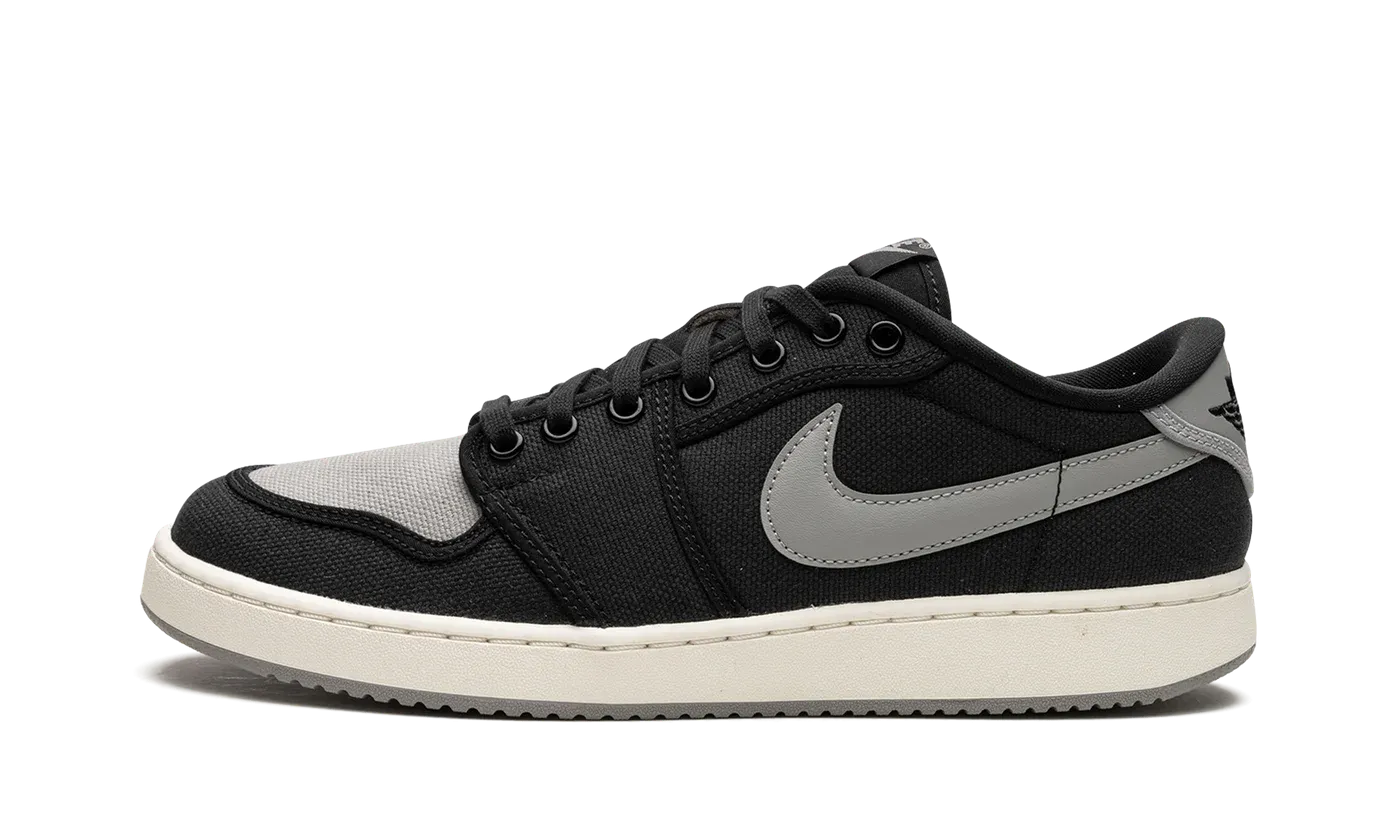The Jordan 1 KO Low "Shadow" is a colorway of the low-top edition of the classic basketball shoe inspired by an original Air Jordan 1 colorway. The shoe we're referring to is the Jordan 1 High "Shadow," an original colorway of the retro basketball sneaker that debuted in 1985. The Jordan 1 Low KO features a similar color scheme to the iconic, OG "Shadow" Jordan 1. The shoe has a Medium Grey canvas base with black canvas overlays and a Medium Grey leather Swoosh. A black "Wings" style "AJKO" logo appears on the grey leather heel tab and a grey "Nike" logo is found on the tongue. The Jordan 1 KO Low rides on the same midsole as the Nike Vandal, and is designed in a vintage-inspired cream hue here. Release date: May 1, 2023