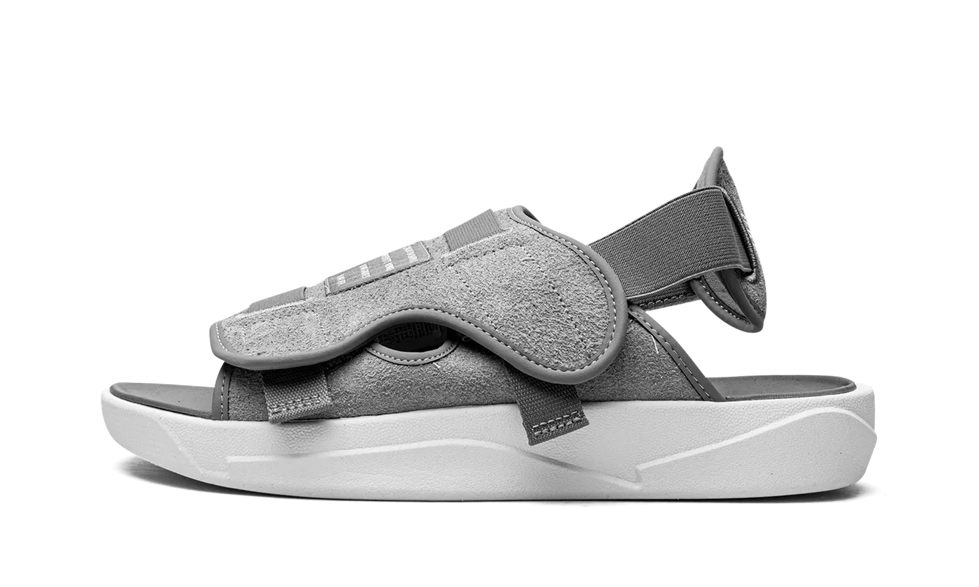 The Jordan LS Slide "Cool Grey" is a casual slip-on sandal designed in a popular Air Jordan colorway. The "Cool Grey" theme debuted on the Air Jordan 11 back in 2001 before appearing on other classic Jordan models thereafter. Here, the neutral-based style is found on the Jordan LS Slide, a sandal designed for post-activity wear. The upper features a Cool Grey suede fold-over strap that stabilizes the wearer's foot. The heel strap is constructed with a cushioning pad for comfort. A tonal grey tag with branding inspired by Michael Jordan is found on the vamp. The white foam footbed provides a comfortable ride.