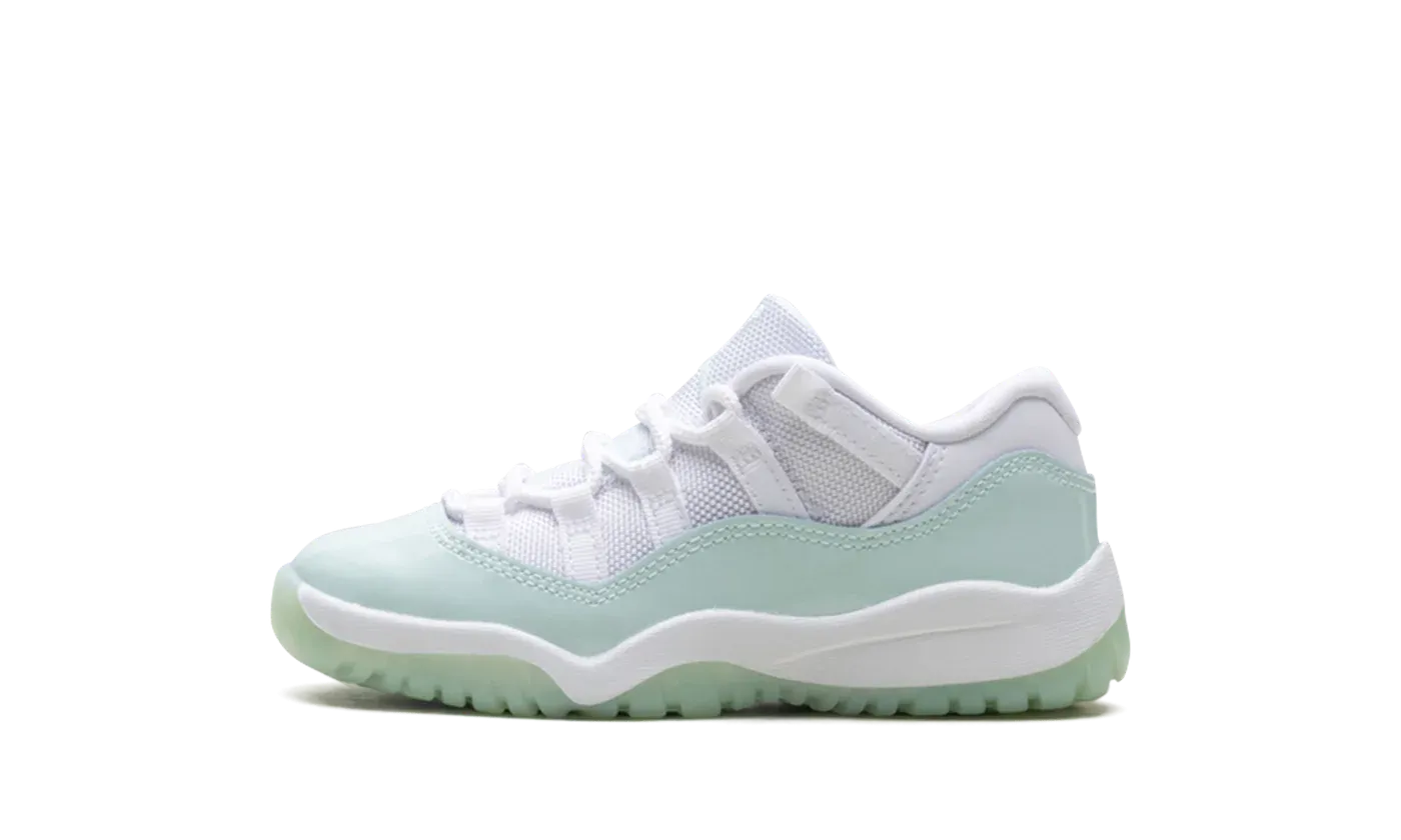 Cool down with the Air Jordan 11 Low PS "Igloo." This Preschool-sized sneaker takes the iconic AJ11 silhouette and drapes it in a refreshing, icy colorway. It features a crisp white ballistic mesh upper wrapped by the signature glossy patent leather mudguard in a subtle Igloo (light green) hue. With a low-top profile and foam cushioning, this shoe delivers sub-zero style and reliable comfort for your little one all summer long.