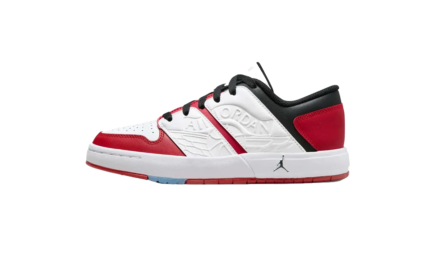 Get ready to turn heads with the AIR JORDAN RETRO 1 LOW NU GS "Varsity Red White Black", the perfect way for your grade-schooler to rock a piece of hoops history. This low-top sneaker offers a premium feel with its classic color-blocked design in bold red, crisp white, and deep black. It retains the legendary silhouette and comfortable fit of the original AJ1. The durable construction and encapsulated Air unit provide all-day comfort and undeniable street style, making it a must-have for the next generation of sneakerheads.