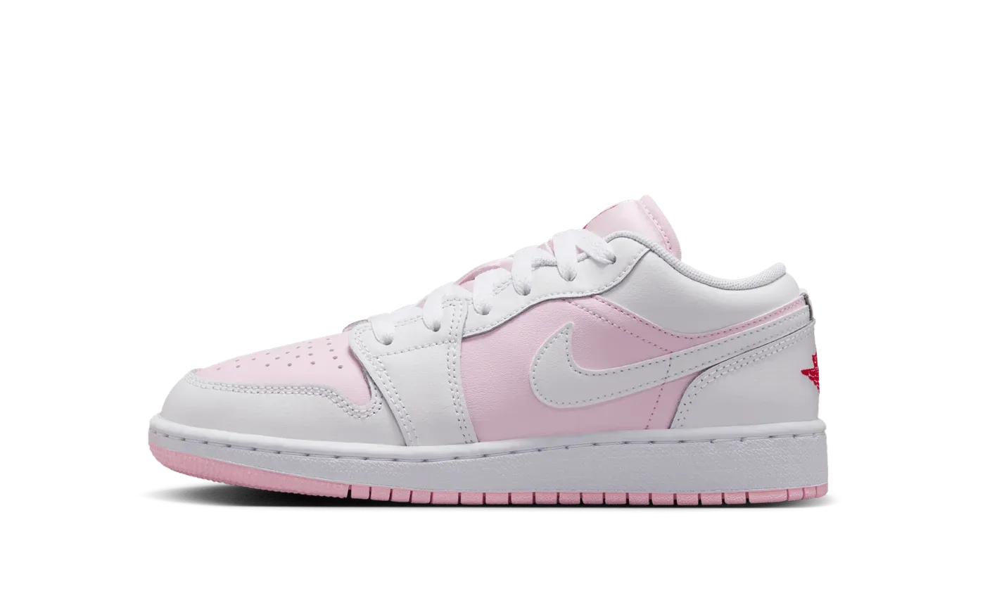 Step into a striking, vibrant look with the Air Jordan 1 Low GS "Pink Foam / Fire Red / White". This celebrated shoe for grade schoolers features a bold Pink Foam and Fire Red upper contrasted sharply with White. Enjoy comfortable Air cushioning and a versatile style, perfect for making a stylish statement at school or on the streets.