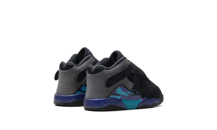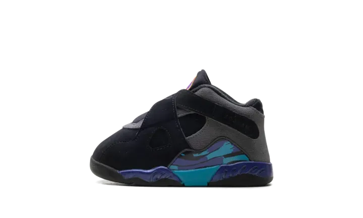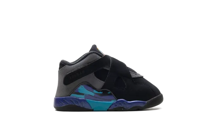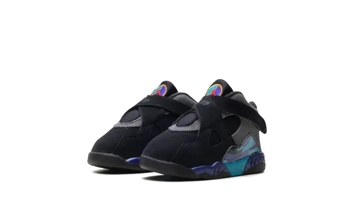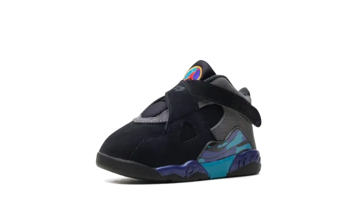 Start the next generation right with the Air Jordan 8 Retro TD, a miniature version of the iconic "Aqua (2025)" colorway. True to the 1993 original, this toddler shoe boasts a black nubuck upper and the unforgettable multi-color Aquatone and Bright Concord accents on the foam midsole. The signature crisscross straps and padded ankle collar ensure a snug, supportive fit, while the simple hook-and-loop closure makes them super easy to take on and off.