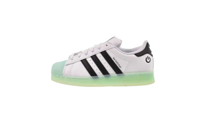 The Superstar LED Lights PS 'Cloud White' shoe features a classic design with integrated LED lights, offering a fun and unique twist on the iconic Superstar silhouette in a clean white colorway.