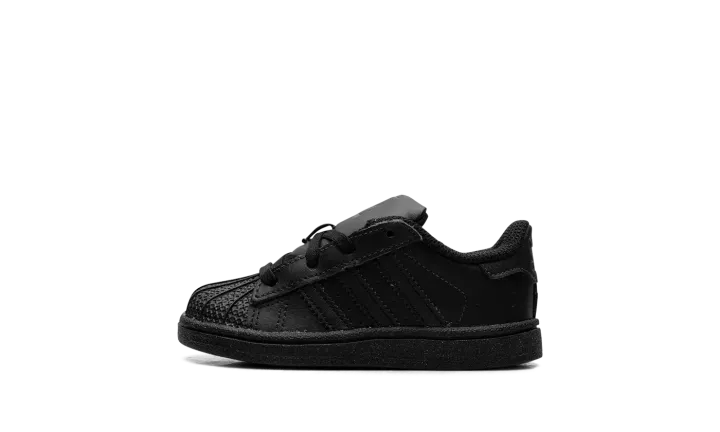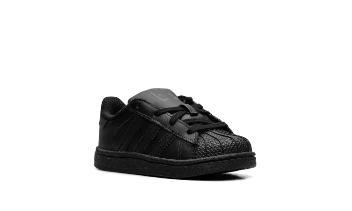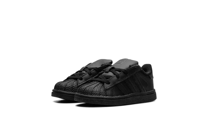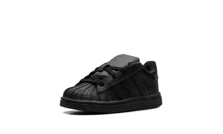 The Superstar TD 'Black' shoe features a classic design in an all-black colorway, making it a versatile and timeless addition to any sneaker collection.