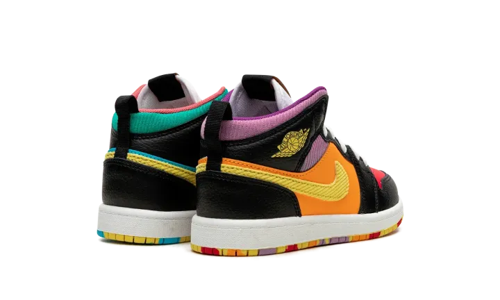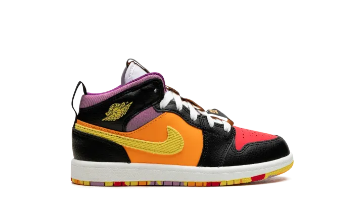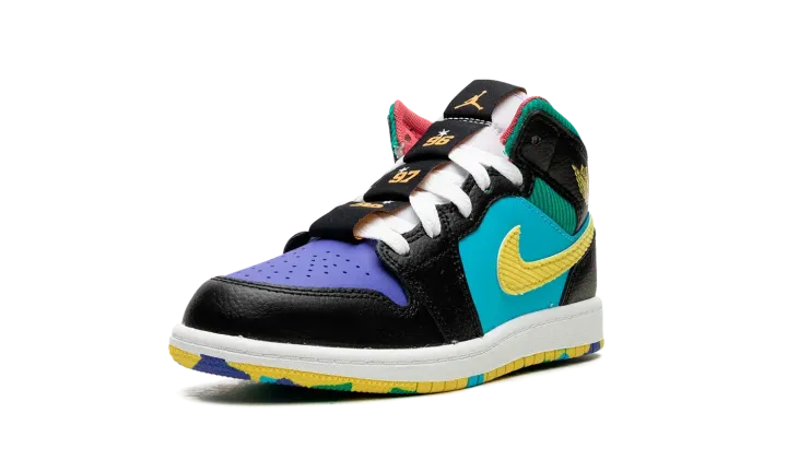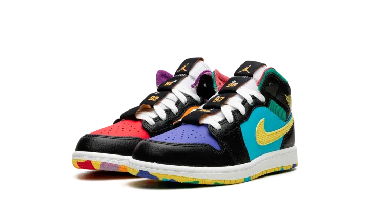 The Air Jordan 1 Mid PS "Six Championships" is the preschool sizing of the casual shoe in a colorway inspired by Michael Jordan's six NBA Championships. The "Six Championships" features the colors of the teams Jordan and the Chicago Bulls defeated to win six NBA Championships in the 1990s in a mismatched color block. The years of the Bulls' championship victories are seen on the tongue of each shoe. Classic Jumpman and "Air" detailing are found on the tongue while a "Wings" logo is seen on the collar. Underfoot, the colors of teams such as the Los Angeles Lakers, the Portland Trail Blazers, the Phoenix Suns, the Seattle SuperSonics, and the Utah Jazz are incorporated into the design of the colorful outsole. Release date: November 26, 2023