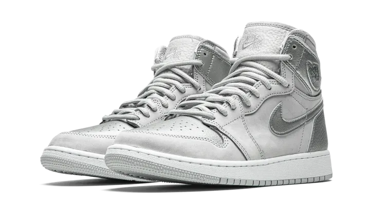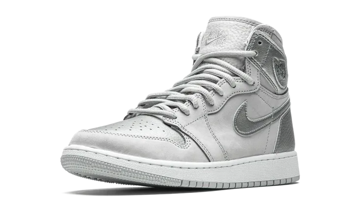 The Air Jordan 1 Co.Jp GS "Metallic Silver" is a modern reinterpretation of the limited edition, Japan-exclusive colorway that was originally released in 2001. Given a somewhat wider global release, this youth sizing of the Jordan 1 Co.Jp "Metallic Silver" now features a "Nike Air" branded tongue tag, unlike the previous version of the shoe from nearly two decades ago. The upper is dressed in a similar neutral color scheme, with grey nubuck being visible on the mid-panel, forefoot, and toe cap. Shiny Metallic Silver leather dots the perforated toe, Swoosh detailing on either side, heel, and collar. While the 2001 iteration displayed a gold accented "Wings" logo on the collar, the 2020 release features tonal "Wings" branding on the leather overlay. Embroidered "Nike Air" is stitched onto the grey tumbled leather tongue. Unique "Co.Jp" branding can be found on the insole. Release date: August 7, 2020.