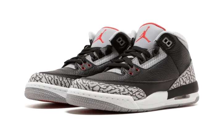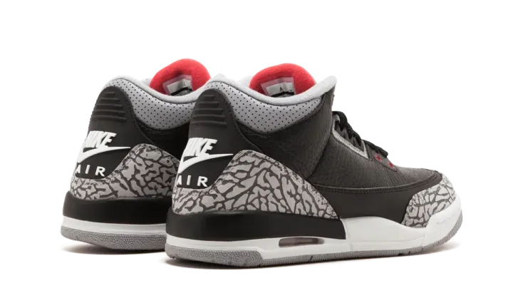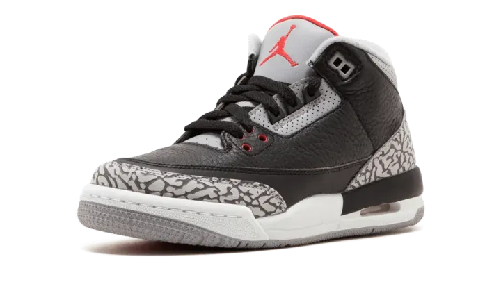 The Air Jordan 3 "Black Cement" is one of the most revered models in sneaker history. Michael Jordan's third signature shoe was designed by Nike legend Tinker Hatfield. The mid-top silhouette incorporates the legendary elephant print around the toe and heel. In 2018, Jordan Brand brought back the iconic Air Jordan 3 "Black Cement" colorway releasing it on Jordan's birthday. This grade school model features scaled-down versions of all the important style and design elements of the adult model.
