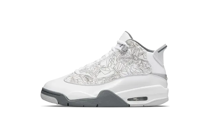 Celebrate the first Jordan hybrid with the Jordan Dub Zero PS, a preschool version in the sleek "White Metallic Silver Neutral Grey Cool Grey" colorway. This fusion model features design elements from several classic Air Jordans, including laser-etched graphics on the leather upper and a shiny patent leather mudguard. A cushioned midsole provides comfortable support for active kids, ensuring iconic style and a piece of sneaker history for the playground.