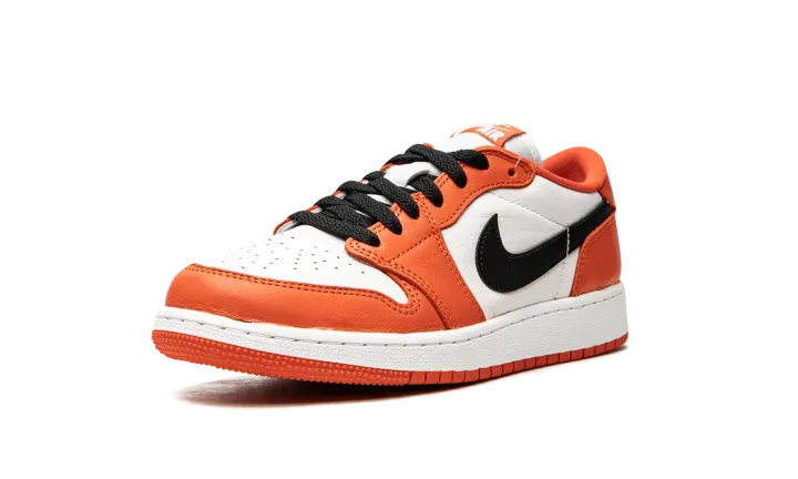 Step into a striking, vibrant look with the Air Jordan 1 Low GS "Starfish". This celebrated shoe for grade schoolers features a bold Starfish orange and white colorway on a smooth leather upper. Enjoy comfortable Air cushioning and a versatile style, perfect for making a stylish statement at school or on the streets.