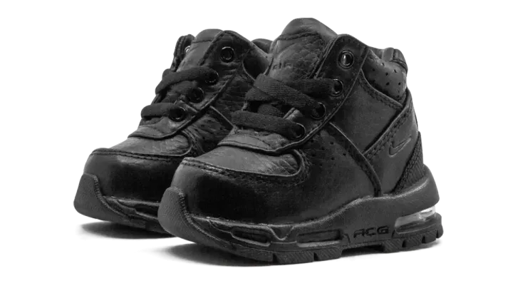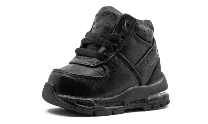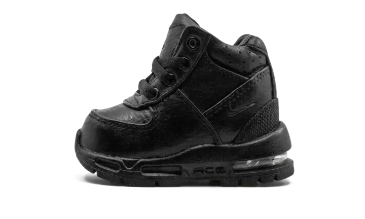 The Nike Air Max Goadome in black is a winter-ready boot that effectively keeps wind and water from chilling toddler toes. Built for tough terrain, snowy conditions, and ankle-deep puddles, this amped-up sneaker boot is styled with a waterproof, full-grain black leather. Breathable material is featured on the toe box and side panels. The durable rubber sole comes with a lugged tread pattern for maximum traction and durability. Adding comfort to the Nike Air Max Goadome sneaker boot is a full-length Air Max unit.