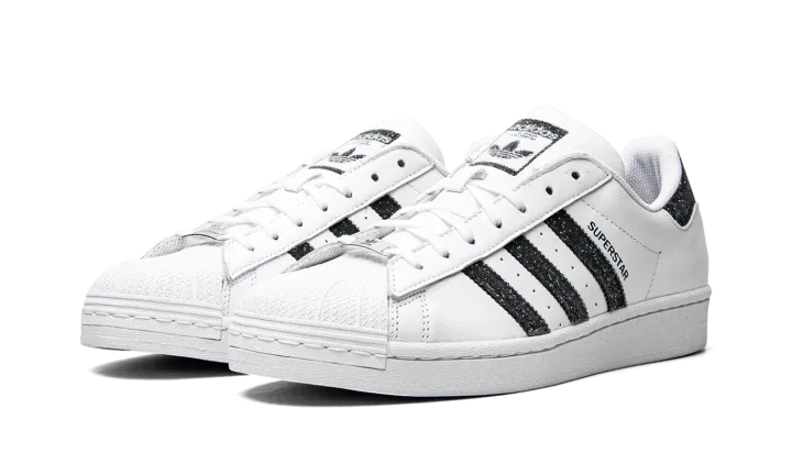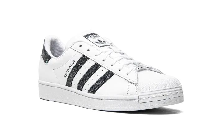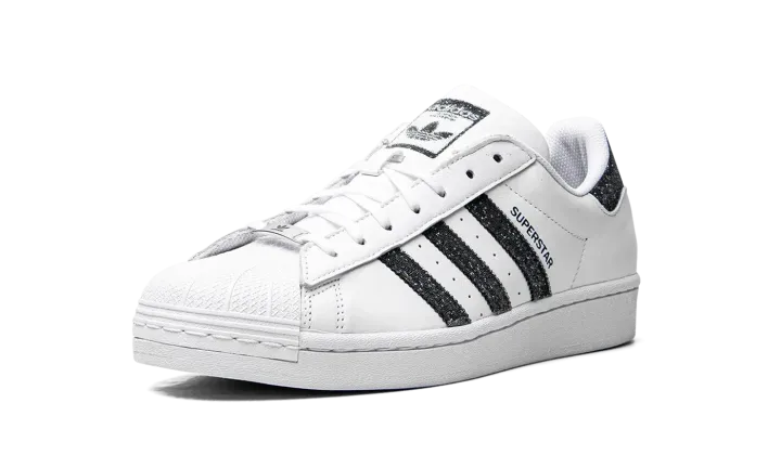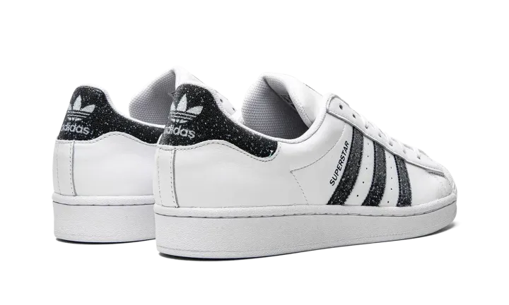 The Superstar I 'Swarovski White Black' shoe features a classic design with dazzling Swarovski crystal details, offering a luxurious and eye-catching twist on the iconic Superstar silhouette.
