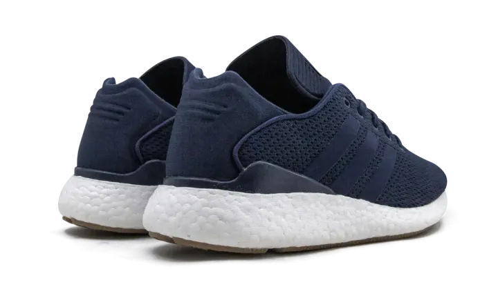The Busenitz x adidas PureBoost Primeknit is a hybrid design that combines one of the brand's most popular shoes with Boost technology to introduce a dynamic combination. Dennis Busenitz, one of adidas' poster boy skaters, takes this look to the next level with modern upgrades, including a Boost sole and Primeknit upper for maximum flexibility and comfort. The model is dressed in a navy blue colorway with signature Three Stripe branding. The white Boost midsole and gum rubber outsole provide grip and support on and off the board