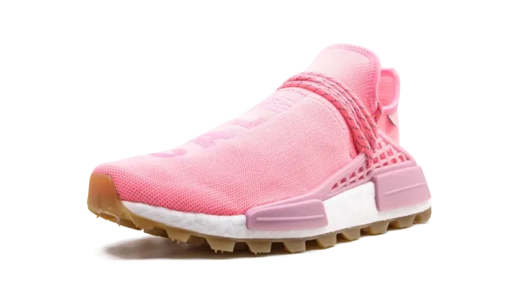 The Pharell Williams x adidas NMD Human Race Trail "Sun Calm" hit shelves in 2019 as part of a four-pair footwear collection, continuing the music artist's message of unity and humanity. Appearing in a powder pink color, the lifestyle sneaker promotes the "Sun" and "Calm" motifs with tonal embroidery on the left and right foot. The pink midfoot cage is secured with matching rope laces, and the midsole blocks also present more of the pink hue. The white Boost midsole offers unparalleled comfort, while a classic gum outsole finalizes the look.