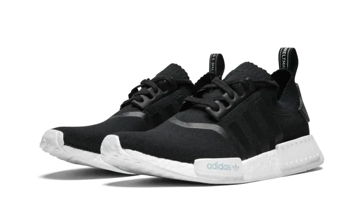 The Adidas NMD R1 swank design sees it's silhouette wrapped in black Primeknit, and unique branding accents along the midsole and heel tab that alternates between different languages ranging from English, Japanese, and German.