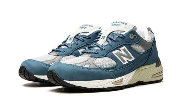 Blue/grey suede M991BSG low-top sneakers from NEW BALANCE featuring logo patch to the side, contrasting panel detail, round toe, front lace-up fastening, logo patch at the tongue, branded insole, signature ABZORB® midsole and rubber sole. These styles are supplied by a premium sneaker marketplace. Stocking only the most sought-after footwear, they source and curate some of the most hard to find sneakers from around the world..
