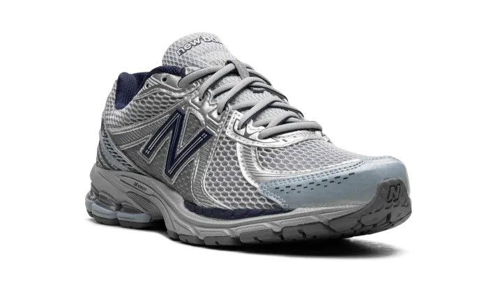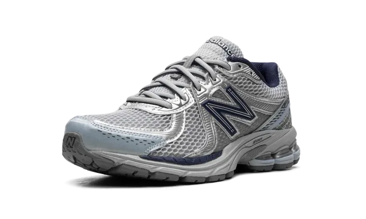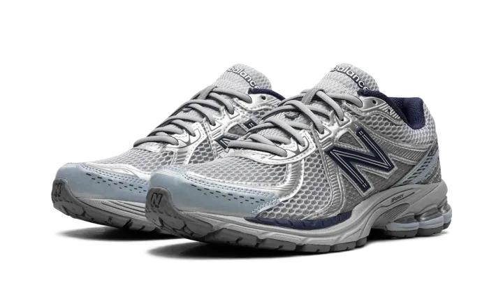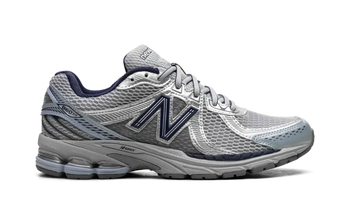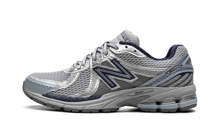 The New Balance 860v2 "Arctic Grey" is a grey-based colorway of the retro running shoe. The New Balance 860v2 was first released in 2011 before it was brought back as a lifestyle sneaker as part of the Y2K sneaker trend in the 2020s. The upper features an Arctic Grey open-mesh base with Metallic Silver and light blue synthetic leather overlays. An oversized navy "N" logo is found on either side, while a "New Balance" logo appears on the tongue. A comfortable N-ergy cushioned midsole completes the look.