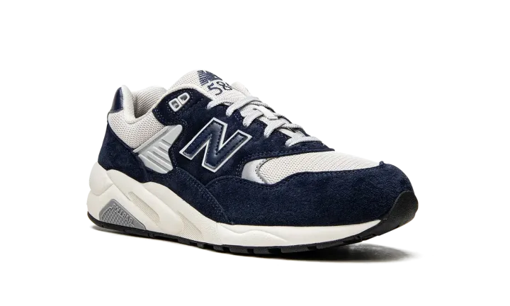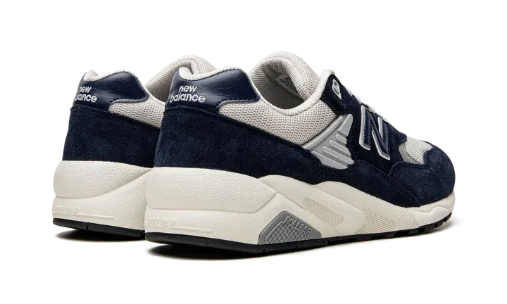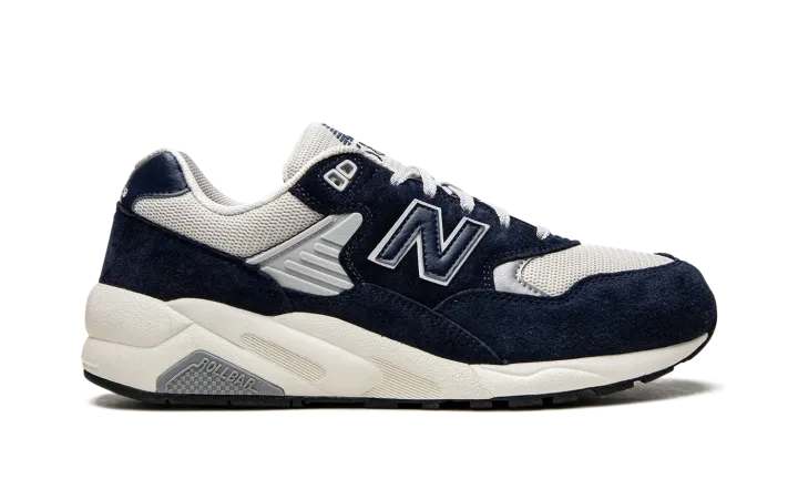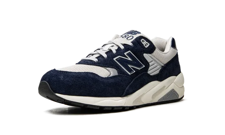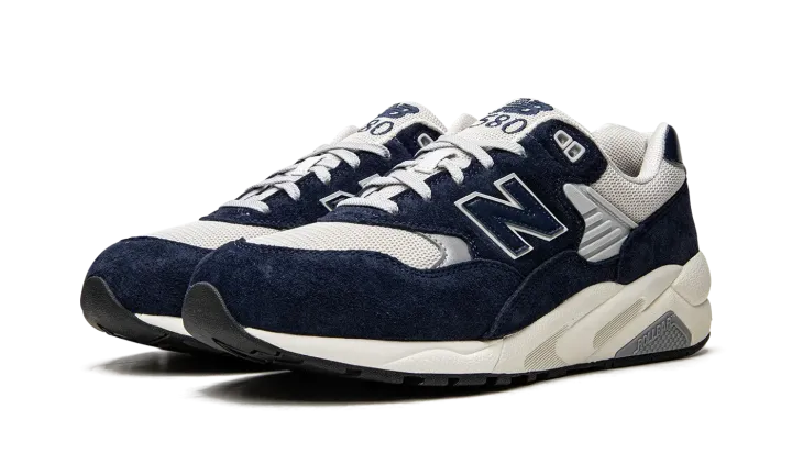 The New Balance 580 "Natural Indigo" is a timeless look for the comfortable lifestyle shoe that features a mostly grey and navy design. The New Balance 580 was featured in the brand's Fall 2022 collaboration with Palace, and subsequently released in colorways like the "Natural Indigo," much to the delight of sneaker collectors. The design features a grey mesh base contrasted with Natural Indigo suede overlays throughout the upper. A grey "N" logo appears on either side of the shoe. Navy "New Balance" branding is printed on the back of the collar. "NB 580" detailing is embroidered in navy on the grey mesh tongue. The shoe's chunky, cream rubber midsole completes the look.