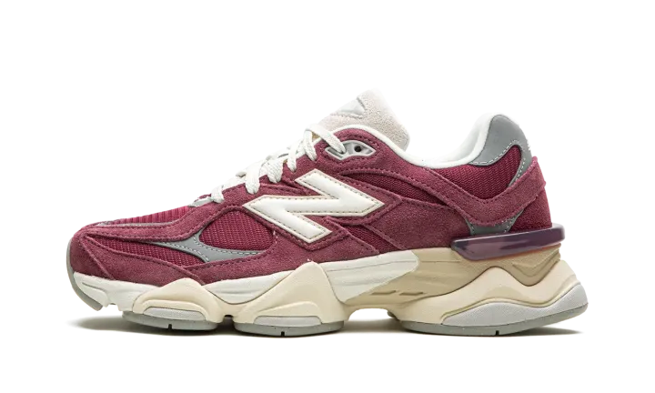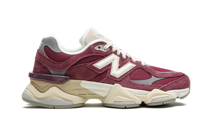 The New Balance 9060 "Washed Burgundy" is a mostly burgundy-colored makeup of the casual sneaker with a retro-yet-modern look. As its name suggests, the "Washed Burgundy" New Balance 9060 updates the shoe with an early 2000s-era running shoe aesthetic with Washed Burgundy suede on its design, specifically on its overlay panels on the mesh base. Grey leather overlays appear on the toe and heel. An oversized, cream-colored "N" logo is seen on either side of the shoe. The 9060's signature chunky midsole is featured in cream and white to complete the look. Release date: September 26, 2023