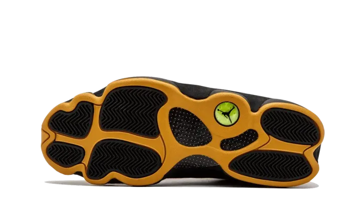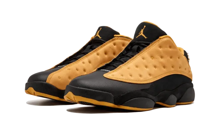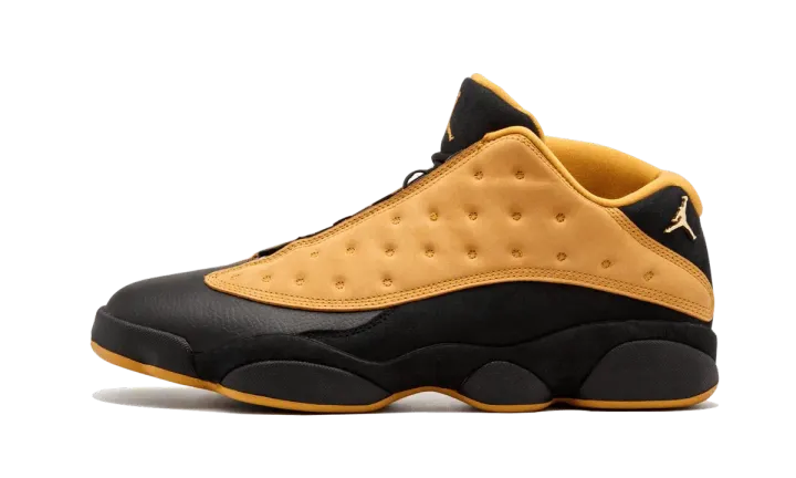 The "Chutney" colorway of the Air Jordan 13 Low was one of the few never-before-retroed. But that changes with the 2017 release, which sees the model return true to form 19 years later. The shoe is anchored by the eye-catching Chutney hue on the dimpled paneling on the upper in suede. Textured leather appears on the toe in black, while matching suede wraps the mudguard and runs throughout the heel. Hits of Chutney appear on the tongue's Jumpman branding. An additional metallic Jumpman logo appears on the ankle, replacing the usual hologram. The shoe's eponymous tannish color coats the outsole to complete the design.