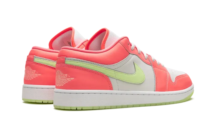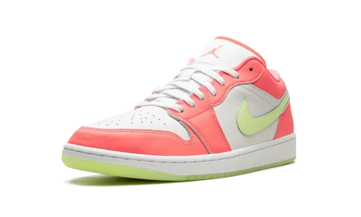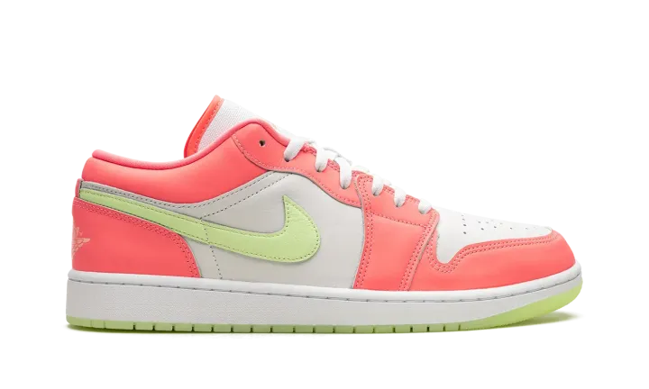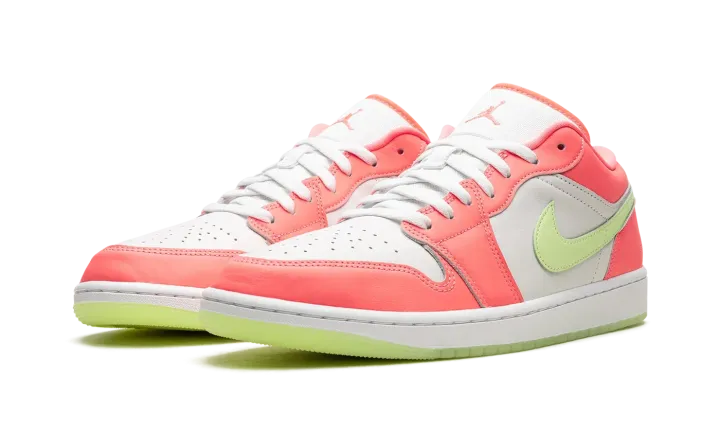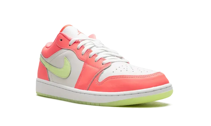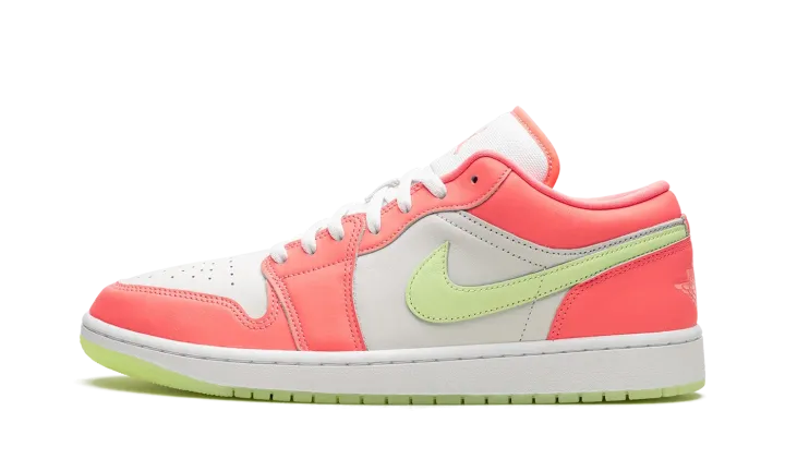 The Air Jordan 1 Low SE "Lava Glow" is a colorway of the retro basketball shoe with a vibrant appearance. The "Lava Glow" features an eye-catching color block that includes white leather on the shoe's base and Lava Glow leather on its overlay panels. A Barely Volt leather Swoosh is found on each side of the shoe. "Wings" branding is printed on the heel and a Lava Glow Jumpman is embroidered on the tongue. Underfoot, the white rubber midsole and Barely Volt rubber outsole complete the bold colorway. Release date: July 7, 2023