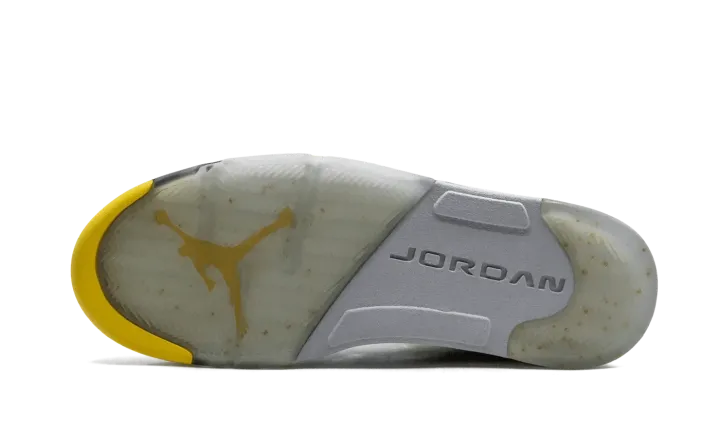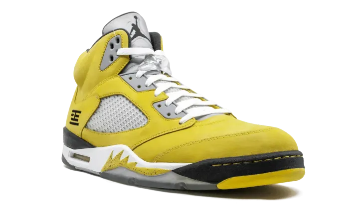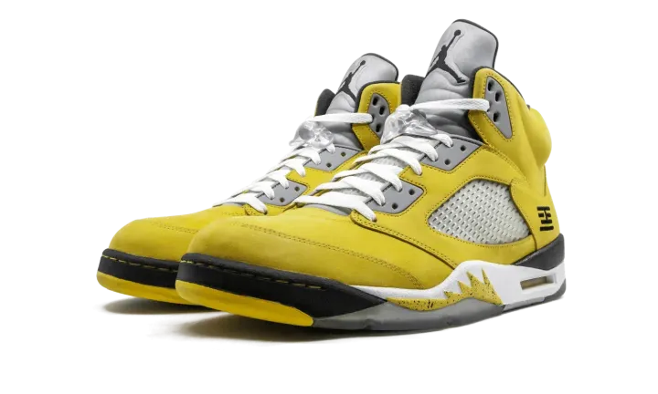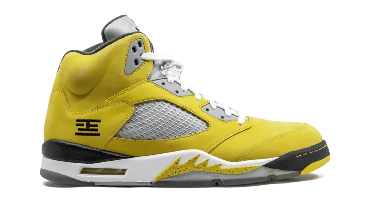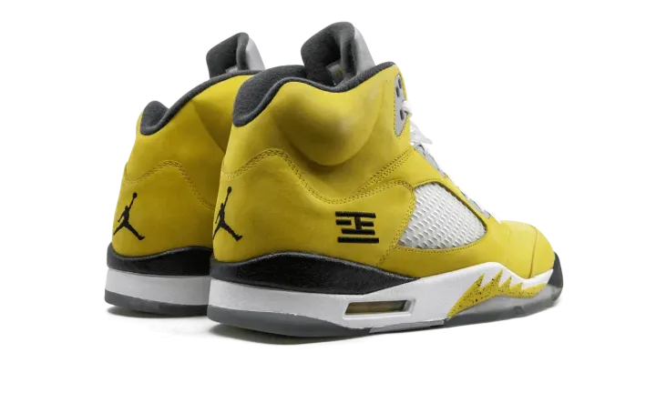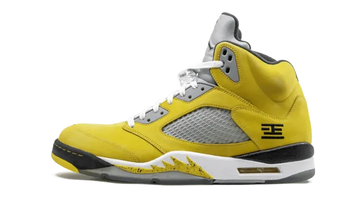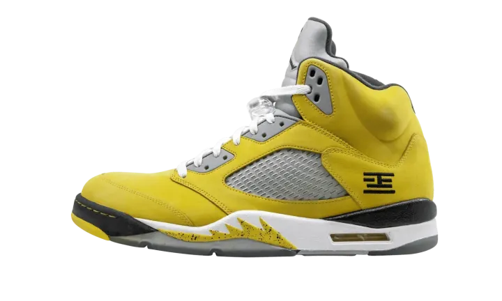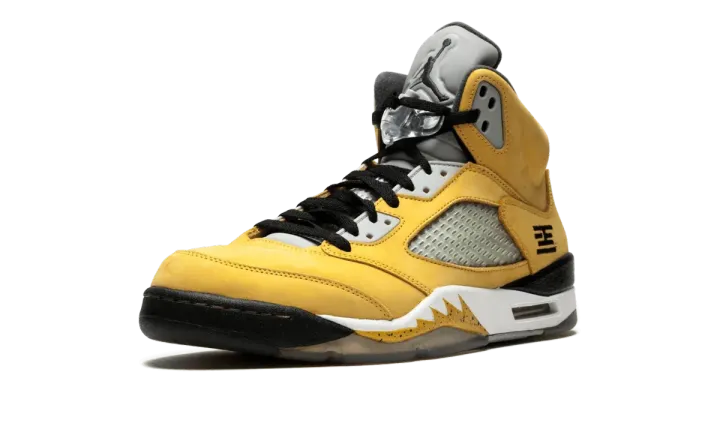 The Air Jordan 5 "T23" is a special release from 2011 for the Tokyo 23 basketball tournament in Japan. The eye-catching colorway features a yellow nubuck upper with black and white accents, resulting in one of the most distinct looks for the shoe ever. The rare colorway released in very limited numbers only in Japan.