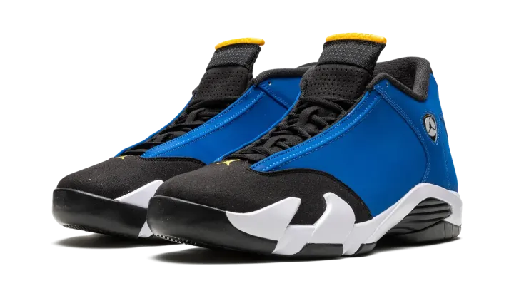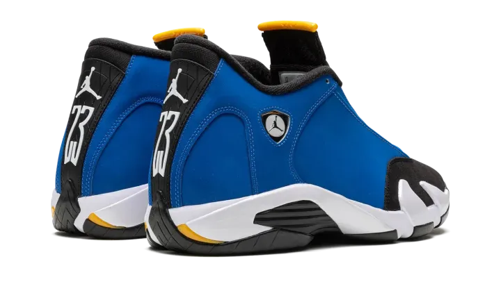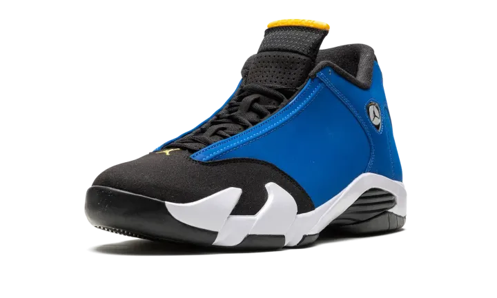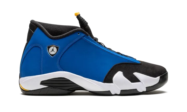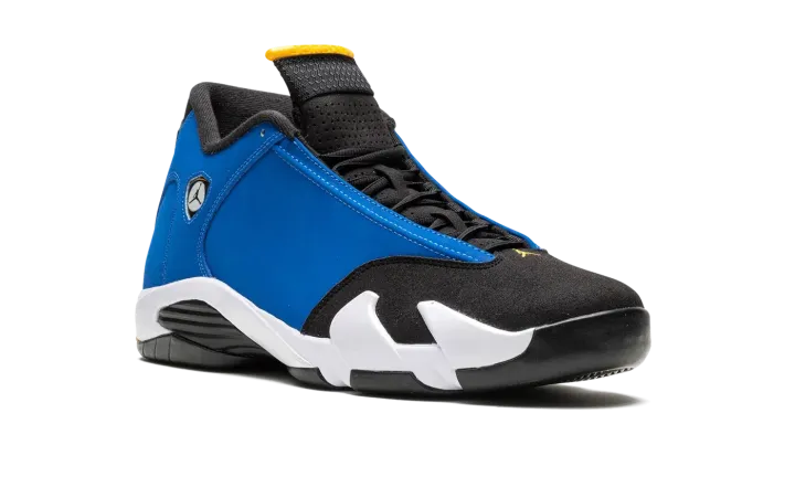 The Air Jordan 14 "Laney" is a colorway of Michael Jordan's fourteenth signature shoe in a colorway inspired by the team uniform colors of Jordan's high school basketball team. The "Laney" colorway theme was introduced on the original Air Jordan 14 Low in 1999 as an homage to Jordan's high school basketball team. The color story was also seen on the popular Jordan 5 "Laney" in 2000, and has appeared on many other models in the years leading up to this 2023 release of the standard mid-top Jordan 14. The shoe is complete with a Varsity Blue synthetic nubuck upper with black panels on the toe and tongue. A Ferrari-inspired Jumpman emblem appears on the collar. "Jordan" detailing appears on the spoiler-like tongue. Underfoot, a white foam midsole and black rubber outsole complete the look. Release date: May 27, 2023