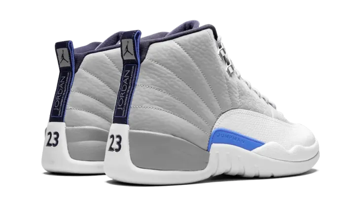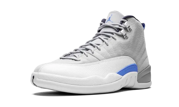 One of the brand-new Air Jordan 12 colorways released in 2016 during the model's big comeback year, this clean colorway features a Wolf Grey nubuck upper with white toe panels and University Blue accents. Often referred to as the "UNC" colorway due to its similar color scheme to Michael Jordan's alma mater of North Carolina.