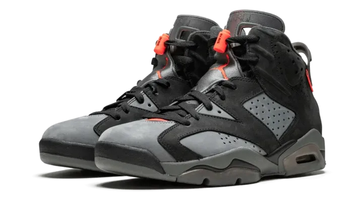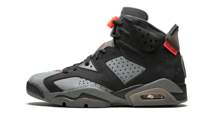The Paris Saint Germain x Air Jordan 6 "Iron Grey" is the next chapter of the continued partnership between Jordan Brand and the French soccer club. The inspiration behind this PSG x Air Jordan collaboration comes from none other than the iconic Air Jordan 6 "Carmine." Lifting the color block of the original "Carmines," the PSG version is comprised of contrasting black suede overlays and an Iron Grey base. An Iron Grey tongue, Jumpman logo, and black laces sit atop matching hues on the midsole, while bright Infrared accents and a smoky translucent outsole complete the clean look. The design also sports special collaborative branding on the heel and insole, and adds a label with "Paname," the nickname used by locals to describe their city, to the heel. The PSG x Air Jordan 6 "Iron Grey" was released on July 27th, 2019