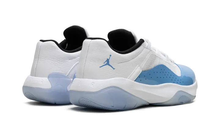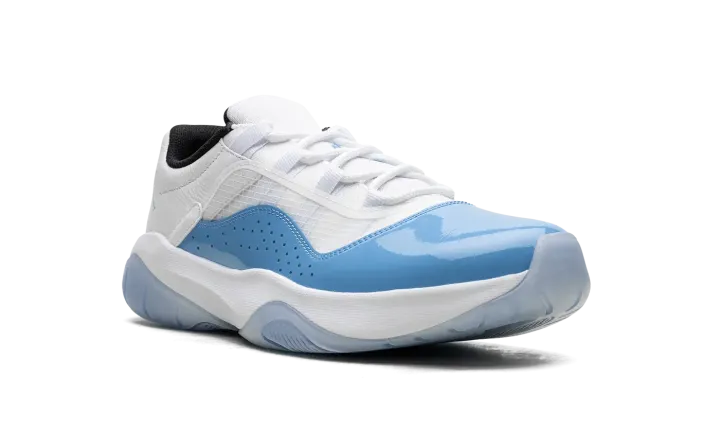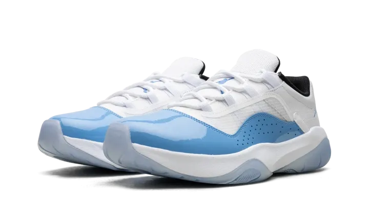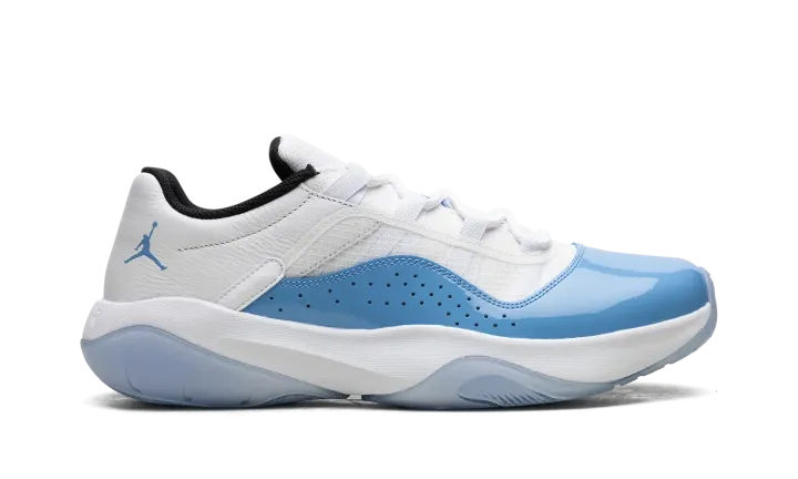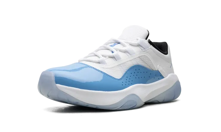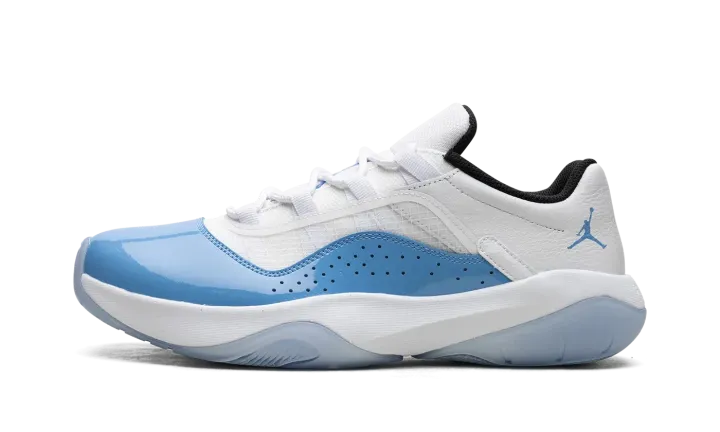 The Air Jordan 11 CMFT Low "University Blue" is a colorway of the contemporary version of the iconic basketball shoe that mimics the Jordan 11 Low's "UNC" style from 2001. The Jordan 11 Low CMFT, or Comfort, features a full grain white leather overlay on the heel with a transparent TPU layer on the mesh grid on the sides. Just like the Jordan 11 Low "UNC," the Jordan 11 Comfort Low in "University Blue" features a Tar-Heel-inspired shade of blue on its patent leather mudguard. An oversized University Blue Jumpman is found on the tongue. Black mesh is displayed on the inner lining. Underfoot, the white foam midsole is paired with a translucent rubber outsole to complete the look. Release date: April 25, 2023