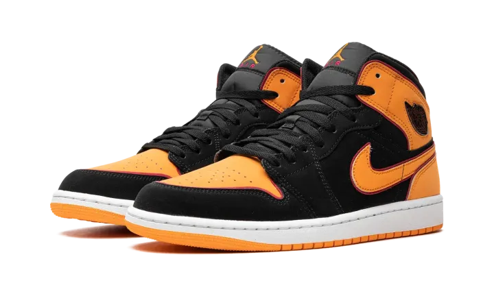 The Air Jordan 1 Mid "Vivid Orange" is a colorway of the mid-top sneaker with orange and red accents. The "Vivid Orange" Jordan 1 Mid is complete with a black synthetic nubuck base with tonal overlays on the toe, forefoot, and eyelets. Vivid Orange accenting is seen on the perforated leather toe, collar, heel, and Swoosh. All of the orange panels are outlined with red. The blazing shade of orange can also be found on the Jumpman logo on the tongue. A white rubber midsole and orange outsole complete the look. Release date: August 31, 2023