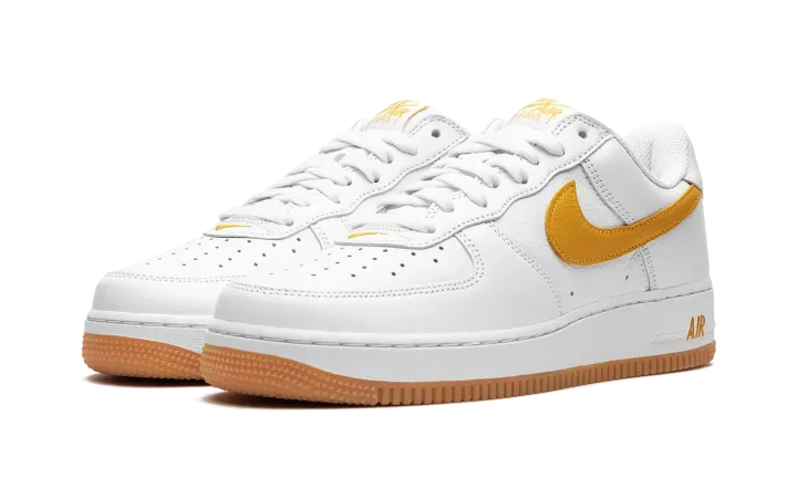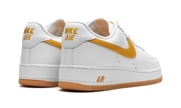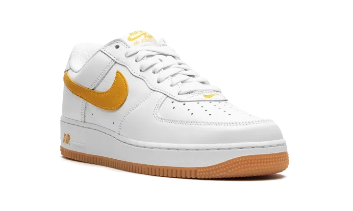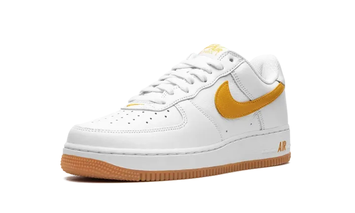The Nike Air Force 1 Low Waterproof "University Gold" is a colorway of the iconic sneaker with a water-resistant leather construction. Good in inclement weather conditions, the Air Force 1 Low Waterproof "University Gold" features a waterproof white leather build with tonal leather overlays and a University Gold leather Swoosh. Additional University Gold accenting lands on the "Nike Air" embroidery on the heel and on the "Nike Air Force 1" detailing on the tongue tag. The golden hue also appears on the "Air" logo on the lateral side of the white rubber midsole and on the rubber outsole. Release date: May 19, 2023