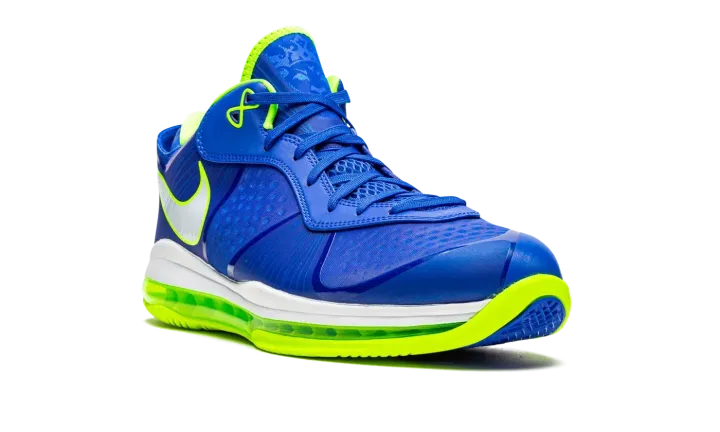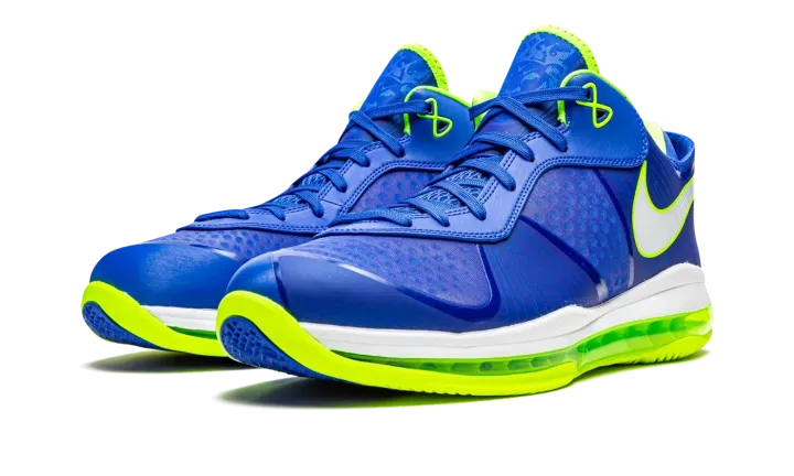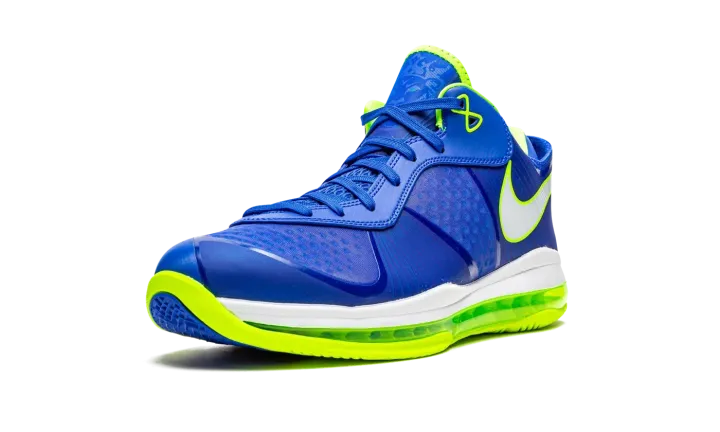 Treasure blue/white/black/volt LeBron 8 V2 Low "Sprite 2021" from NIKE featuring signature Swoosh logo detail, panelled design, round toe, front lace-up fastening, rubber sole, transparent Max Air sole and Release date: Summer 2021. These styles are supplied by a premium sneaker marketplace. Stocking only the most sought-after footwear, they source and curate some of the most hard to find sneakers from around the world..
