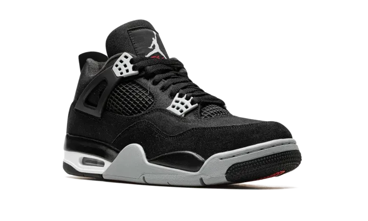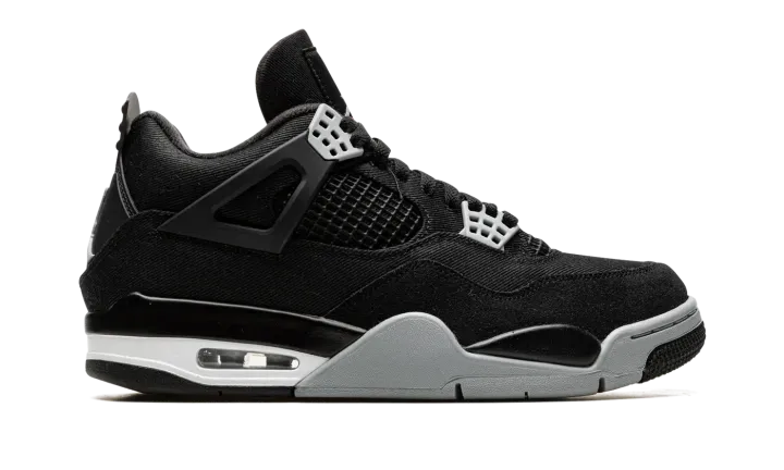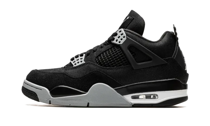 The Air Jordan 4 "Black Canvas" is a stealthy, mostly monochromatic colorway of the retro basketball shoe. The "Black Canvas" Jordan 4 is a versatile colorway of Michael Jordan's fourth signature shoe that features a black canvas construction. Black netting appears on the tongue and on the mid-panel. Light Steel Grey eyelet panels contrast the shoe's black-based appearance. A grey Jumpman is found on the heel and on the black canvas tongue. Underfoot, a black and white foam midsole and visible Air cushioning unit in the heel and a grey rubber outsole complete the clean design. Release date: October 1, 2022