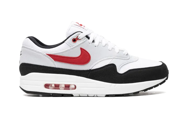 The Nike Air Max 1 "Chili 2.0" is a remix of the "Chili" colorway that debuted on the retro running shoe in 2003. Updated with a slightly different look, the "Chili 2.0" features a lighter shade of grey on the overlays and a reverse-colored tongue tag in comparison to the original design from the early 2000s. More specifically, the "Chili 2.0" features a white mesh construction with grey overlays and a University Red Swoosh. Navy "Nike Air" branding appears on the heel and red "Nike Air Max 1" detailing is seen on the tongue tag. Underfoot, the white foam midsole is complete with a red-tinted Air bubble in the heel. Release date: July 20, 2023