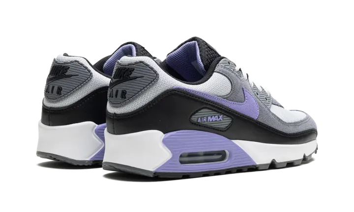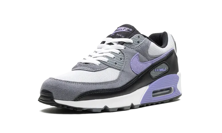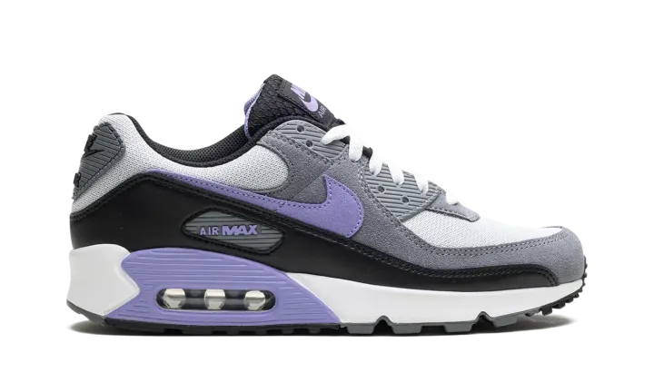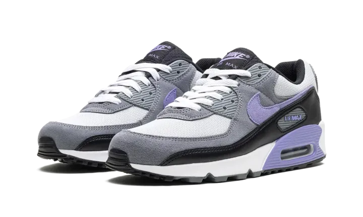 The Nike Air Max 90 "Light Thistle" is a colorway of the retro running shoe highlighted with lavender-colored detailing. The Air Max 90 "Light Thistle" has a Photon Dust mesh upper with Cool Grey suede overlays. A Light Thistle suede Swoosh can be found on either side of the shoe. The lavender-colored hue also appears on the "Nike Air" branding on the heel, on the "Air Max" branded window on the lateral side of the heel, and on the classic "Nike Air Max" detailing on the tongue tag. Underfoot, a Light Thistle panel surrounds the Max Air cushioning unit in the heel of the midsole. Release date: June 28, 2023