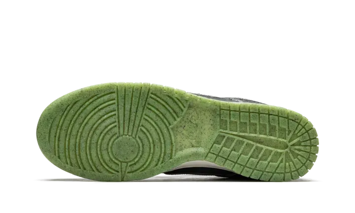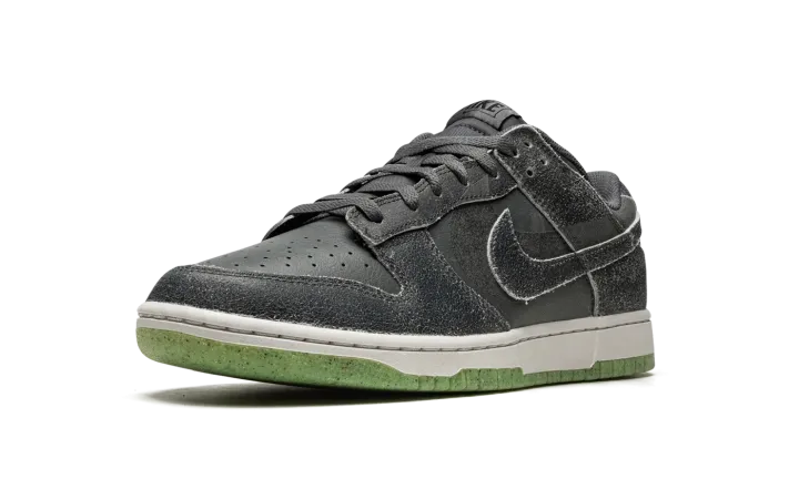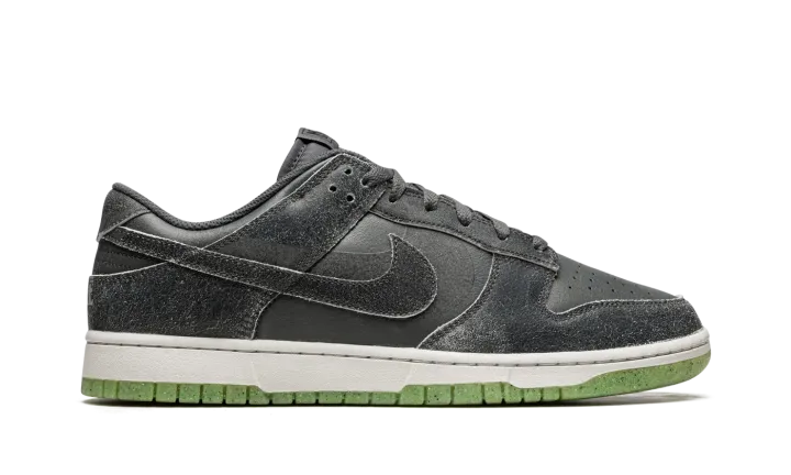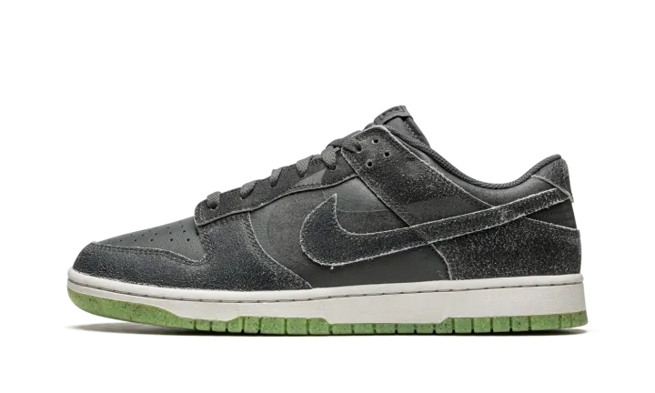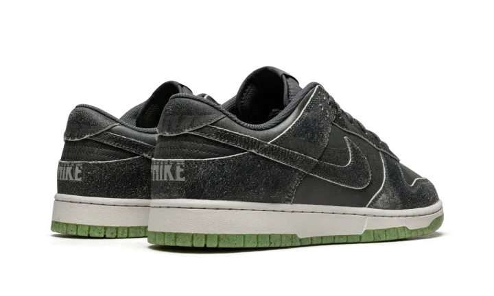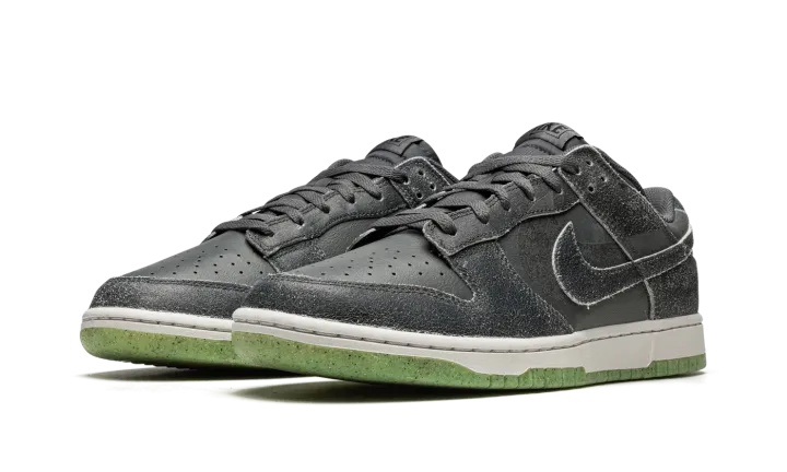 The Nike Dunk Low "Halloween 2022" is a colorway of the retro basketball shoe that celebrates the spooky holiday. As one could imagine, Halloween has proven to be a popular source of inspiration for sneaker colorways over the years, and that is very much evident on this Dunk Low. The shoe features an Iron Grey leather base with tonal cracked leather overlays and Swoosh branding. An oversized tonal Swoosh is layered over the grey suede logo giving the branding a shadow-like effect. Grey "Nike" detailing appears on the back of the shoe and on the tongue tag. The green Nike Grind outsole is made from recycled materials. Release date: October 27, 2022