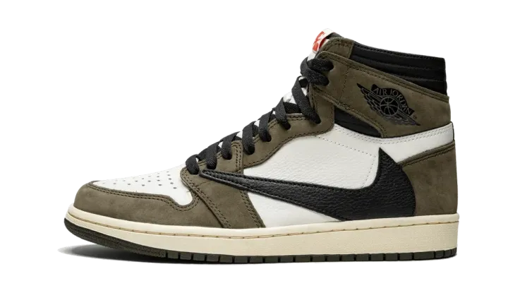 The Travis Scott x Air Jordan 1 High OG is the limited edition collaboration from the rap superstar and Jordan Brand on the iconic silhouette that features a major twist. One look at the Travis Scott x Air Jordan 1 and you'll notice the backwards Swoosh across the upper, a first for the legendary silhouette. Travis Scott's Air Jordan 1 also features a premium construction in Sail leather and Dark Mocha nubuck with black accents. The Jordan 1 is further modified with a padded nylon collar that has a hidden stash pocket. Each pair is completed with Scott's "face" logo embossed on the heels and a "Cactus Jack" logo on the right insole. The Travis Scott x Air Jordan 1 High had a special release at the Grammy Awards on February 10, 2019 during Scott's performance, and then received a wider, but still limited release on April 26, 2019.