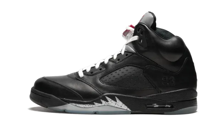 Very limited and constructed with impeccable quality, this is the Air Jordan 5 from the BIN 23 series of premium Air Jordans. Similar to the original "Black/Metallic" colorway, the shoe features a soft black leather upper metallic silver accents and white laces.