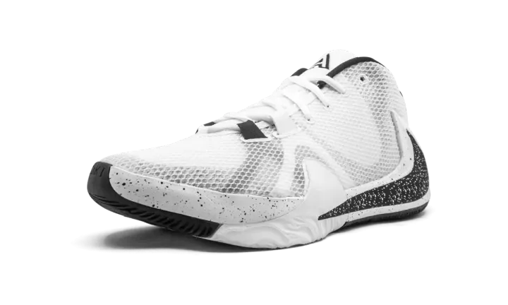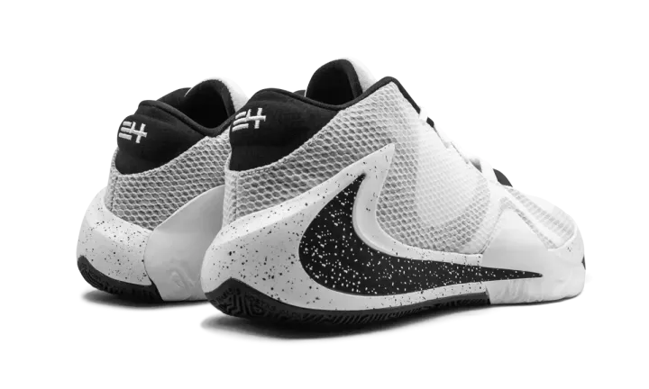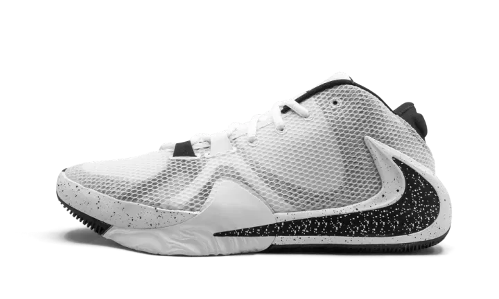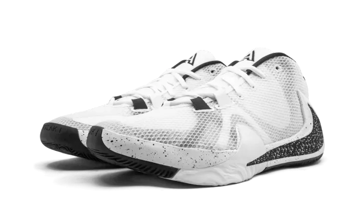 The Nike Zoom Freak 1 "Oreo" finds NBA superstar Giannis Antetokounpo's first signature shoe with Nike Basketball reimagined in a clean black and white color scheme. Reminiscent of the "cookies and cream" treatment that other Nike and Jordan Brand products have been given, the Zoom Freak 1 "Oreo" features a white mesh upper contrasted by black components underneath the semi-translucent mesh. Black and white nylon eyelets, embroidered "34" branding on the heel, and embroidered "A" detailing on the tongue provide additional styling cues. Finishing off the look is a white midsole with black speckles and an oversized black and white speckled Swoosh forming the heel of the shoe.