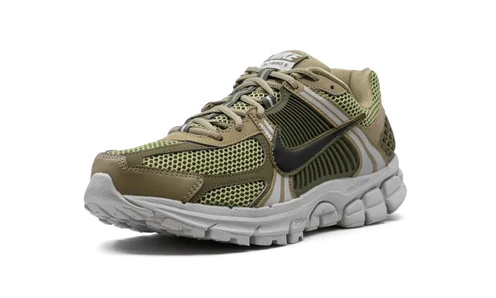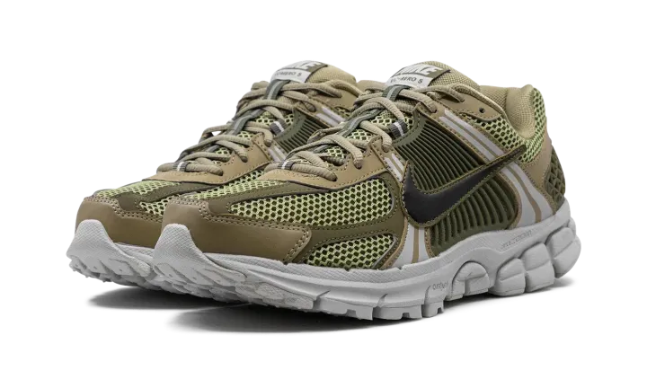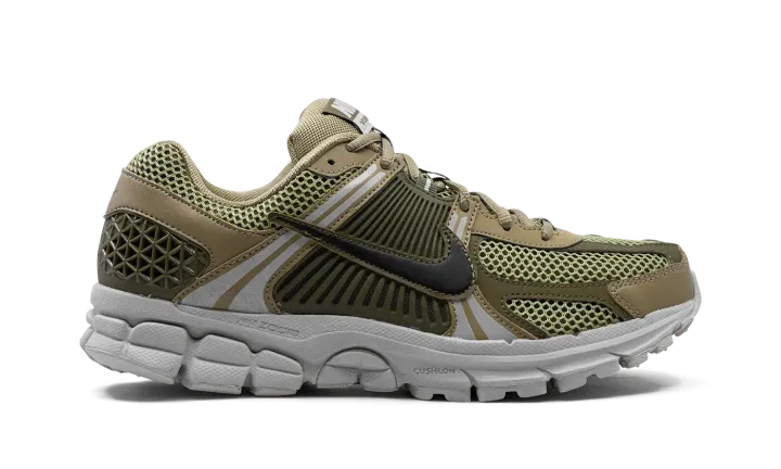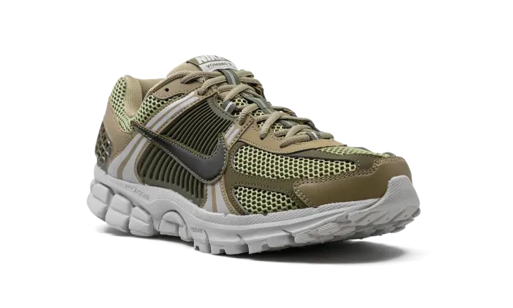 The Nike Zoom Vomero 5 "Neutral Olive" is a colorway of the retro performance running shoe with an earth tone color scheme for versatility. The Zoom Vomero 5 was first released in 2010 before later becoming part of the Y2K sneaker trend in late 2022 onwards. On the "Neutral Olive" colorway, the shoe features an olive green mesh upper and an olive plastic lace "cage" and heel counter that appear in shades of olive. A black leather Swoosh can be found on the sides, while "Nike Vomero 5" branding can be found on the tongue. Zoom Air cushioning within the Sail-colored foam midsole provides all-day comfort.
