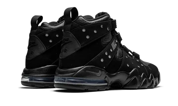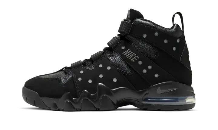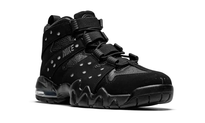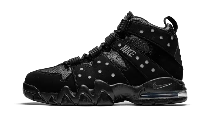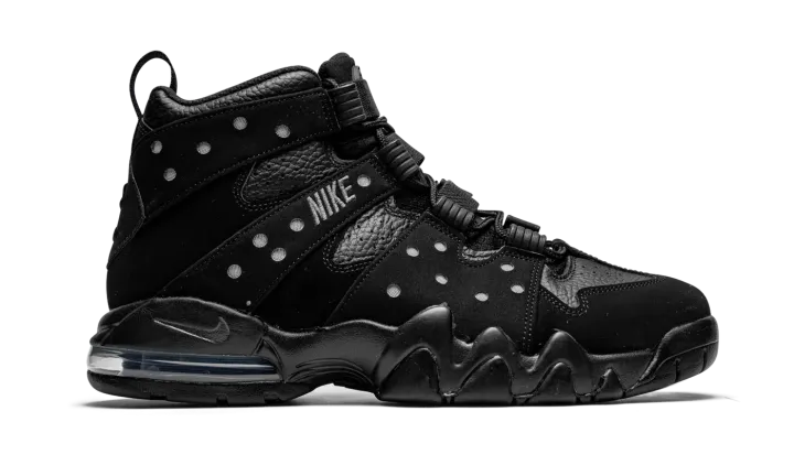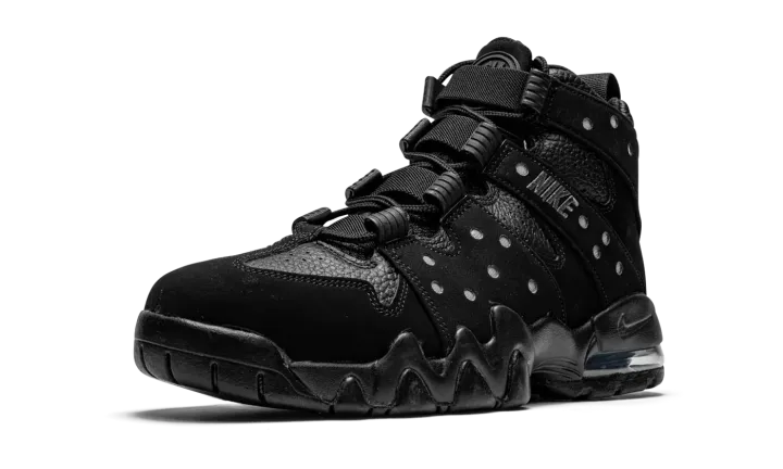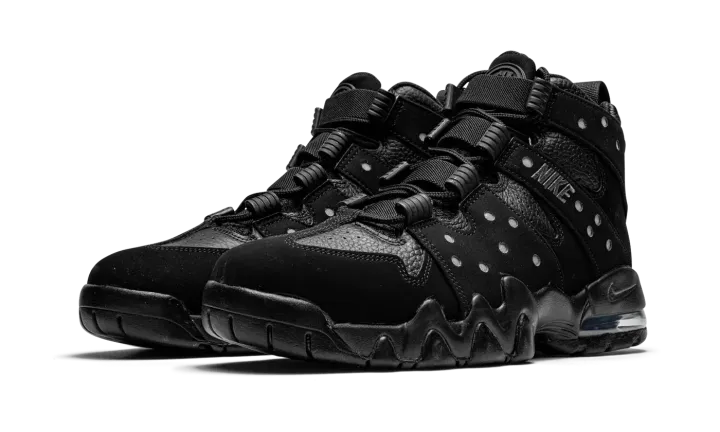 The Nike Air Max 2 CB '94 "Triple Black" is a monochromatic colorway of Charles Barkey's signature shoe that was originally released in 1994. The "Triple Black" colorway is one of several designs of the iconic performance hoops shoe released by Nike in Fall 2020. The design by Tinker Hatfield, which is inspired by the look of a straitjacket, features a split black tumbled leather and black synthetic nubuck design along the eyelets and midsole, respectively. A tonal "Nike" logo is embroidered on the midfoot harness that supports the lacing system. Additional "Nike Air" branding appears on the back of the shoe and a small Swoosh can be found on the back of the midsole. A large Air window in the heel finishes off the look.