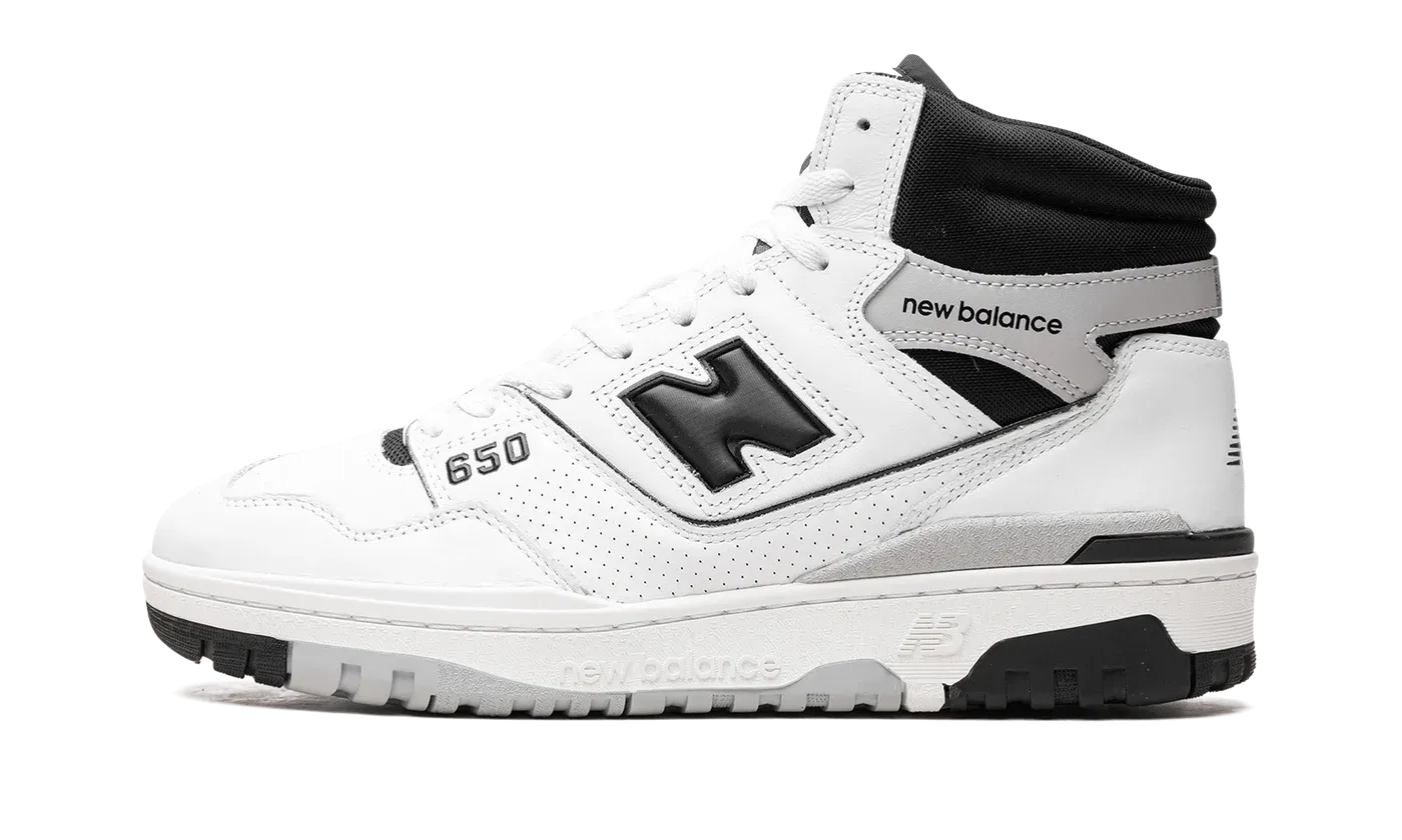 The New Balance 650 "White/Black" is a versatile and timeless colorway of the retro basketball shoe. The New Balance 650 is essentially a high-top version of the New Balance 550 sneaker that New York based clothing brand Aimé Leon Dore helped re-issue in 2020. The 650 features many of the same vintage-inspired details as the 550. Here, on the "White/Black" 650, white leather appears on the shoe's upper. A contrasting black "N" logo is located on the sides. NB" branding is found on the heel and classic "New Balance 650" detailing is located on the tongue tag. Release date: April 20, 2023