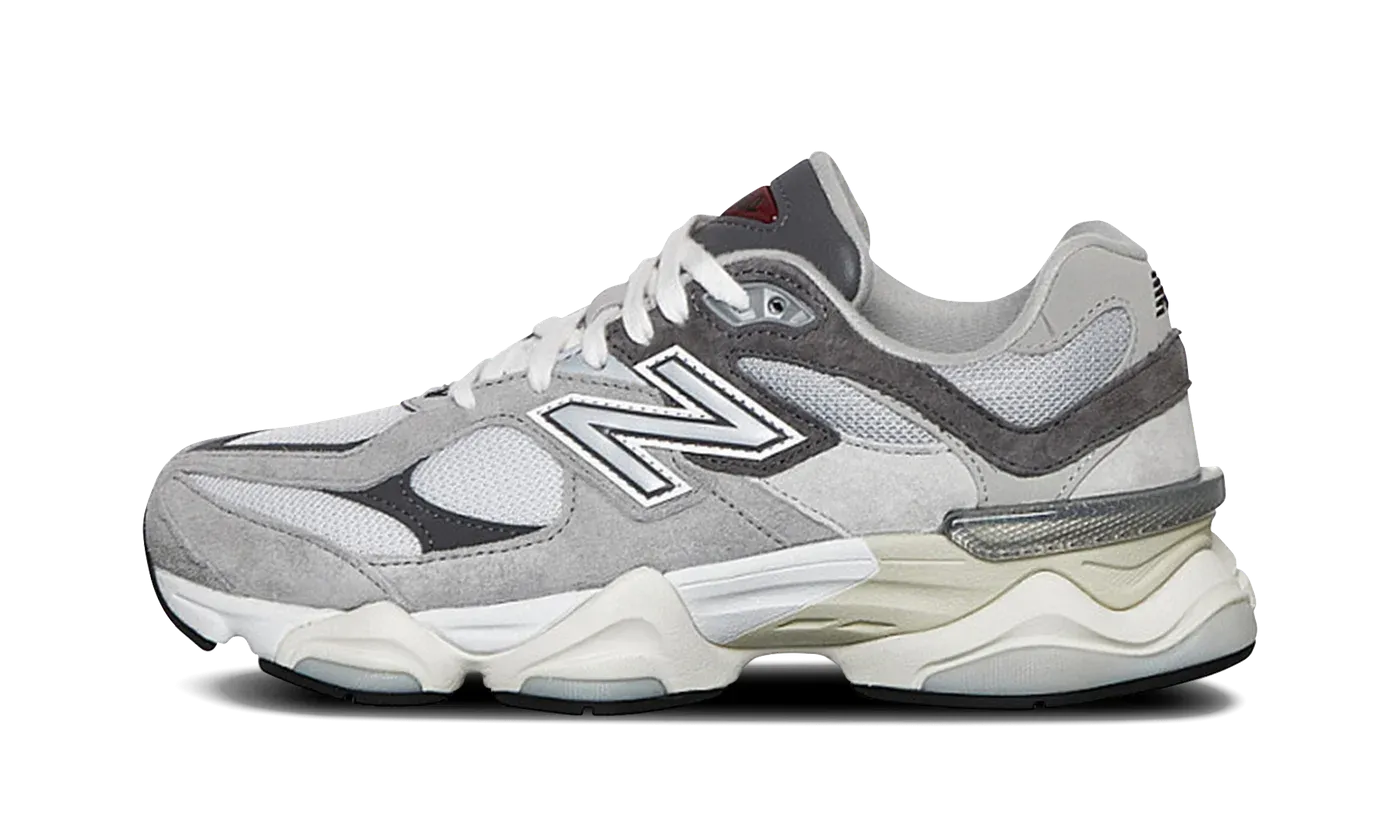 Discover versatile style with the New Balance 9060 "Grey." This casual lifestyle shoe, appearing in New Balance's iconic "Grey" colorway, features a grey mesh base with tonal suede overlays. A slightly darker shade of grey leather accents the forefoot and heel. Complete with a tonal oversized "N" logo and a chunky white, cream, and grey midsole.