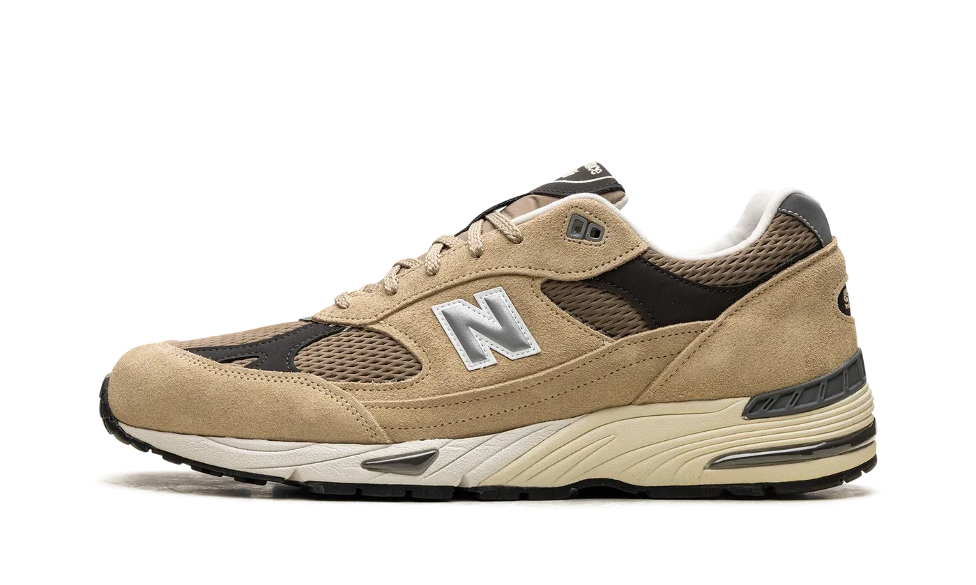 The New Balance 991v2 "Finale Pack - Pale Khaki" is a tan-based colorway of the retro shoe. One of two colorways from the "Finale Pack," the New Balance 991v2 "Pale Khaki" features a brown mesh base contrasted with Pale Khaki-colored premium suede overlays. A reflective grey "N" logo can be found on either side of the shoe, while "991" branding appears on the heel. Additionally, a "New Balance 991" detail is embroidered on the tongue in brown lettering. Underfoot, FuelCell cushioning provides all-day comfort.