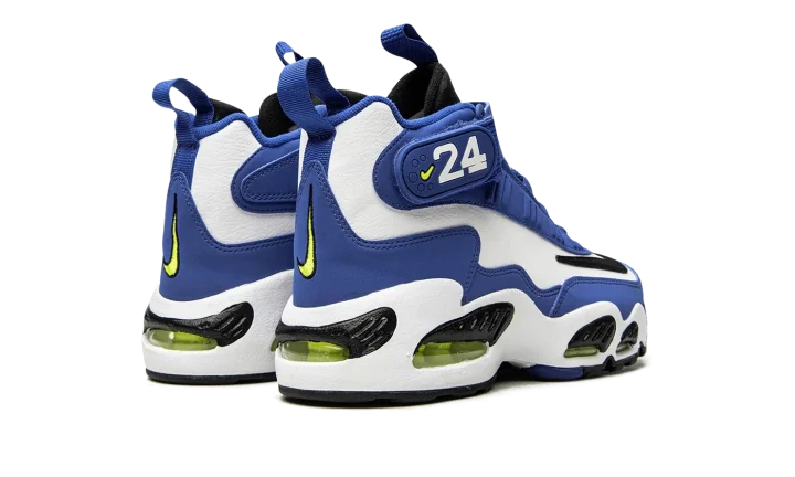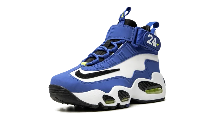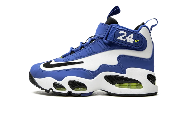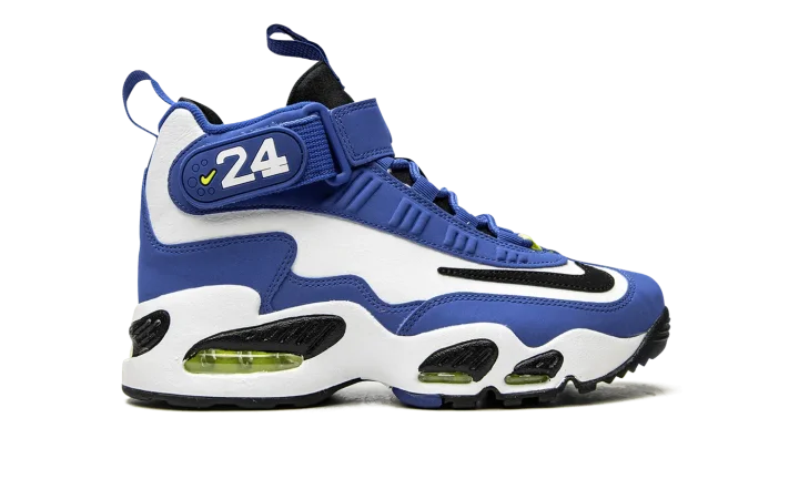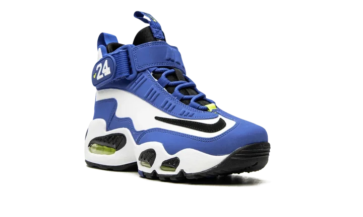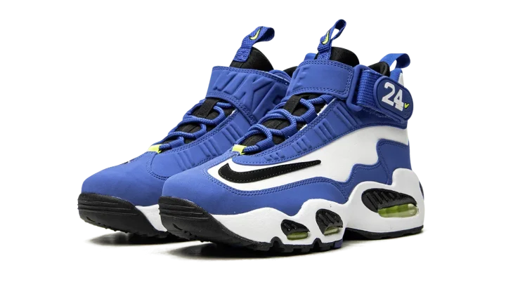 Varsity royal/volt Air Griffey Max 1 "Varsity Royal / Volt" sneakers from NIKE KIDS featuring signature Swoosh logo detail, panelled design, double pull-tab at the opening, round toe, lace-up detailing, adjustable strap to the front, ankle-length, signature Air cushioning and rubber sole. These styles are supplied by a premium sneaker marketplace. Stocking only the most sought-after footwear, they source and curate some of the most hard to find sneakers from around the world..