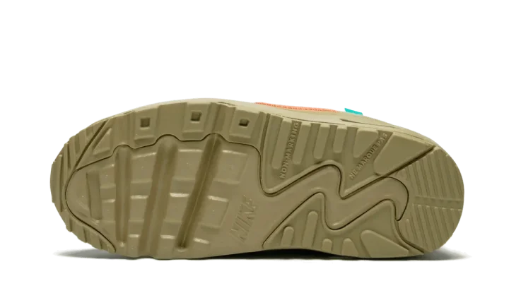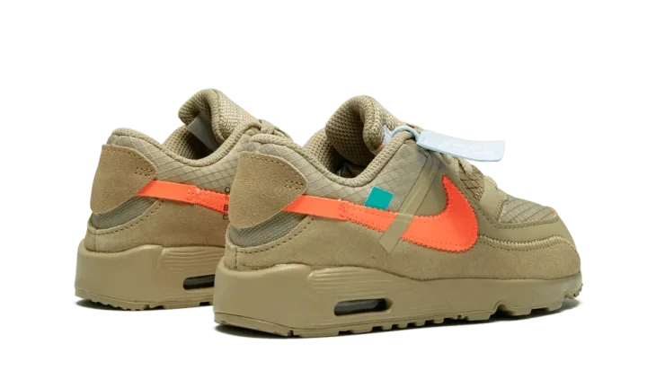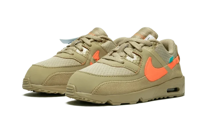 The Off-White x Nike Air Max 90 BT "Desert Ore" is the toddler sizing for the coveted collaboration by Virgil Abloh and Nike. Mirroring the look of the men's release, the baby-sized Air Max 90 receives a Desert Ore shade across the deconstructed upper and sole unit. The tonal tan upper is accented with neon orange Swooshes and green tabs, as well as a miniature version of the signature Off-White zip tie in light blue. The Off-White x Nike Air Max 90 BT "Desert Ore" for babies released in February 2019.