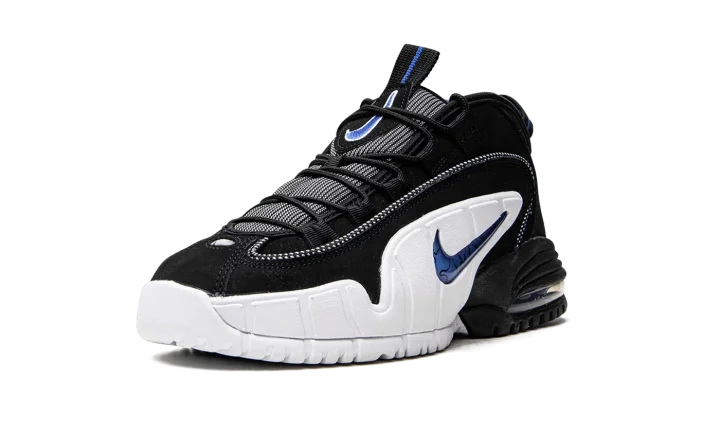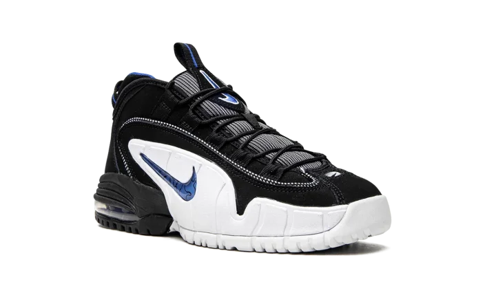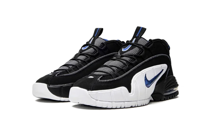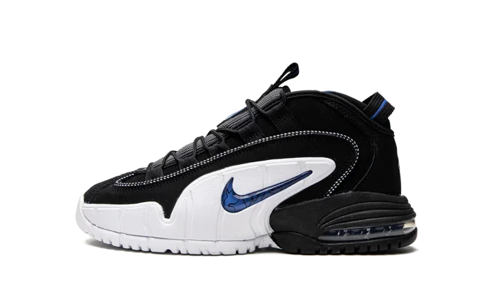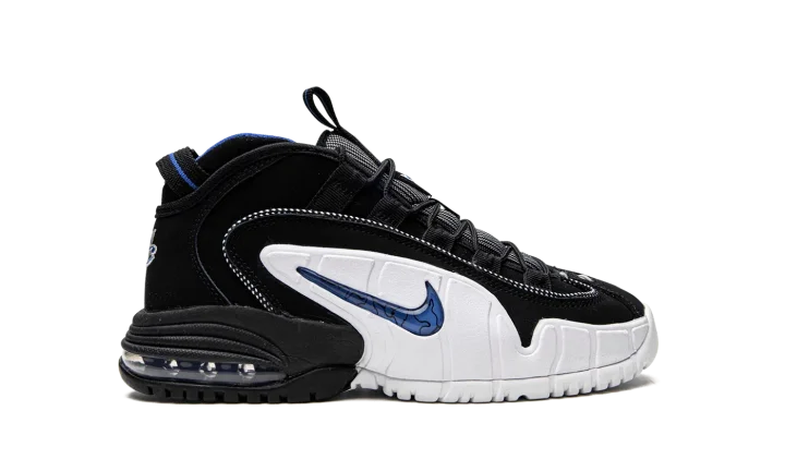 The Nike Air Max Penny 1 GS "Orlando" is the youth sizing of Anfernee "Penny" Hardaway's first signature shoe with Nike that re-released in 2022. A classic performance basketball shoe from Nike's 1990s catalog, the Air Max Penny 1 was worn by Penny with the Orlando Magic during the 1995-96 NBA season. The modern "Orlando" colorway from 2022 is nearly identical to the version Penny wore in the NBA. The upper features a black synthetic nubuck base with white detailing on the lateral side "wing" panels. Penny's signature "1-Cent" branding is found on the heel, and royal blue jewel Swooshes lay within the lateral side wings. A visible Air unit appears in the heel of the midsole to complete the celebrated sneaker. Release date: August 11, 2022